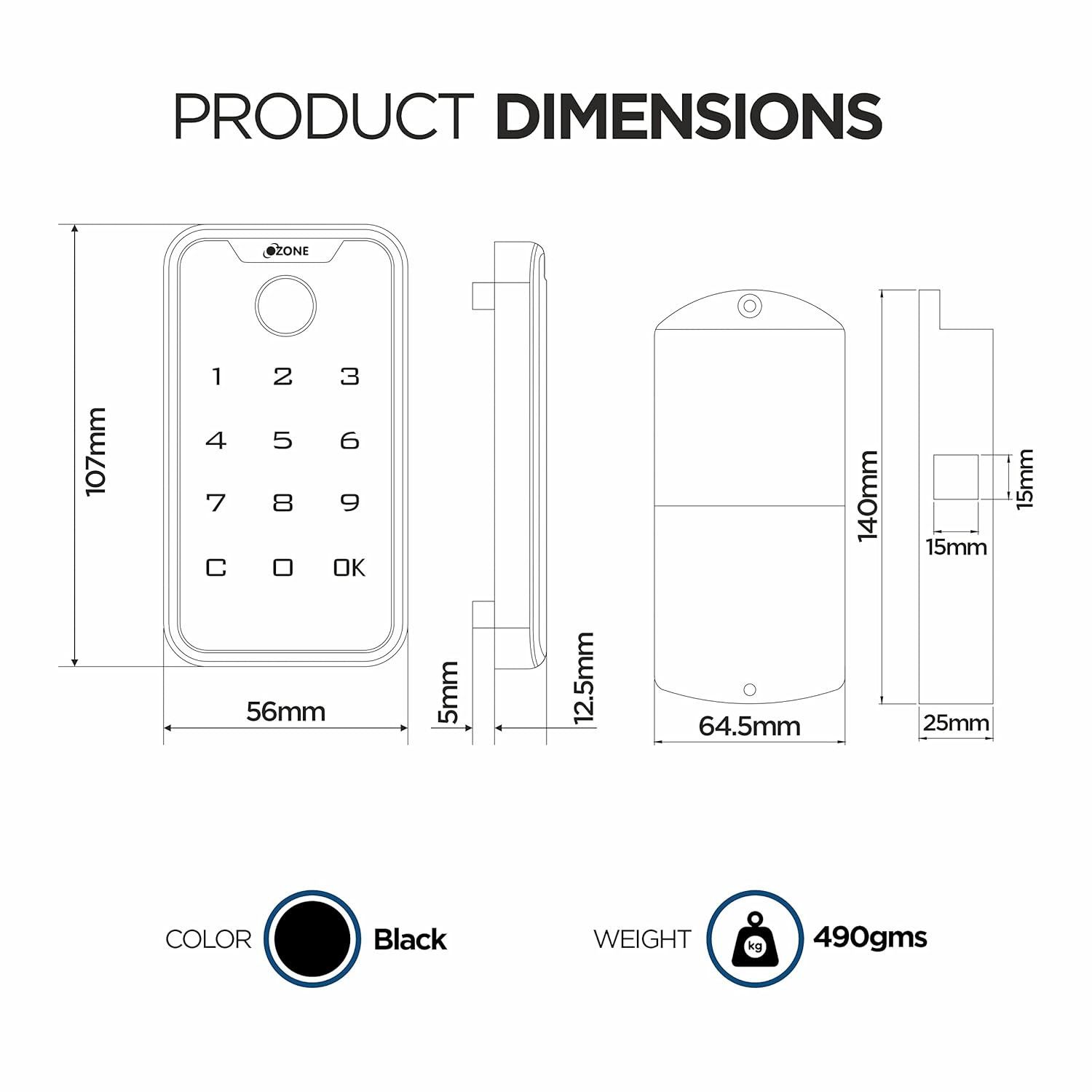 Ozone Electronic Digital | Mobile App | Fingerprint | Password | RFID Card Furniture Lock (Black) (Fingerprint | PIN)