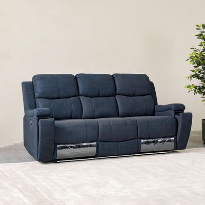 Indulge in luxury with the Paladin 1-Seater Fabric Recliner, featuring LED lighting and cup holders in a stunning blue finish.