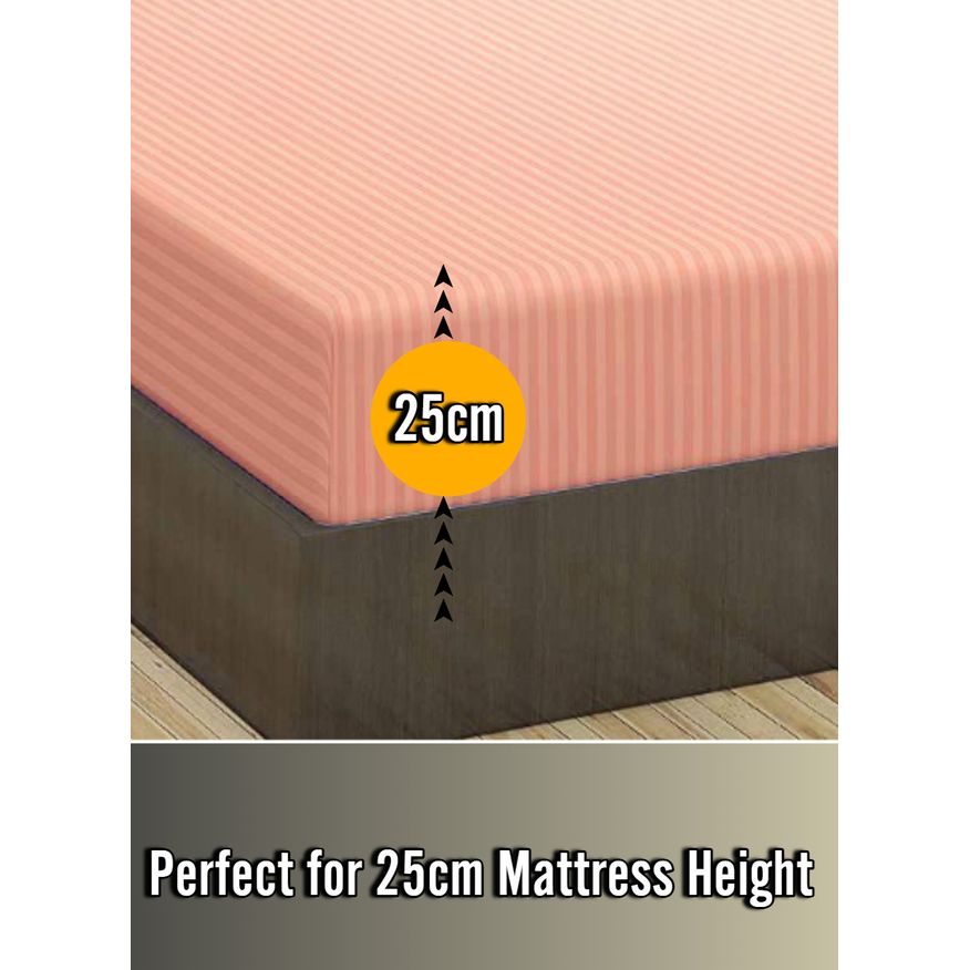 Pastel Pink Striped Cotton Bed Sheet Sets 3 Piece Set Deep Pocket 200x200x25cm