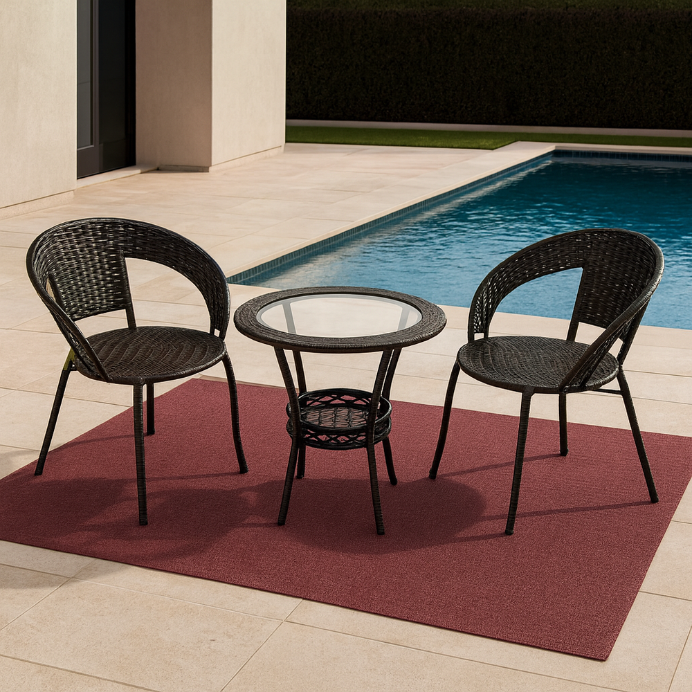 This 3-piece patio rattan outdoor dining set is a stylish and practical way to enhance your indoor or outdoor spaces