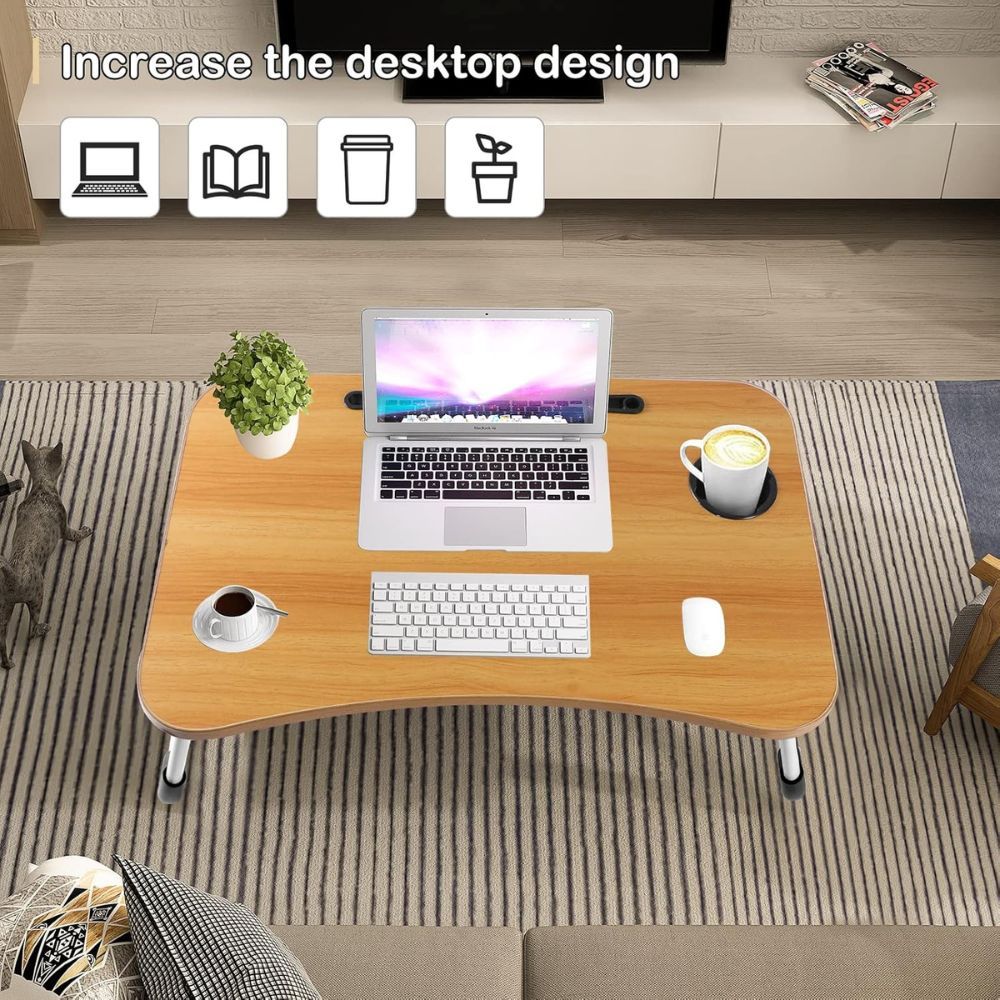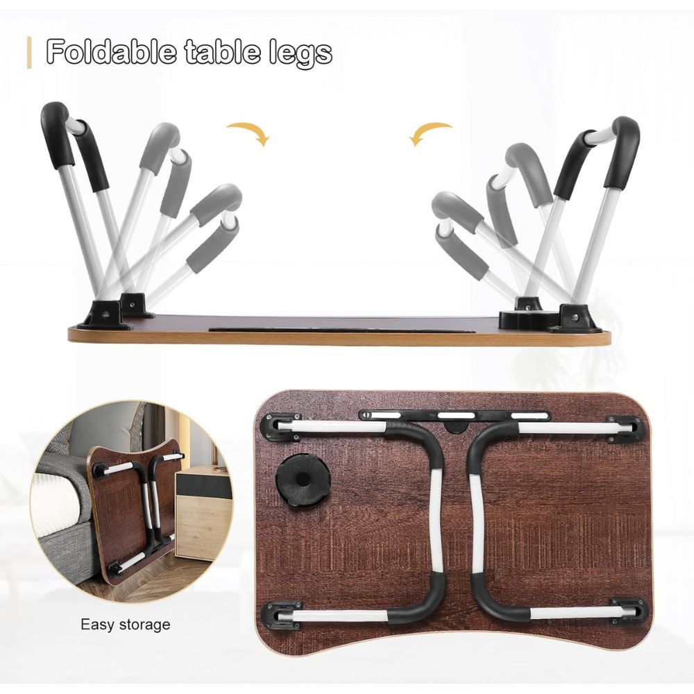 Portable Folding bed Table, Laptop Desk With ipad and Cup Holder Adjustable Lap Tray Notebook Stand,Foldable Non-slip Legs Reading Table Tray for working,studing,camping
