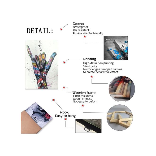 Poster Shaka Sign Gesture Colorful Wall Canvas Classic Street Decor For Living Room (12''Wx18''H)
