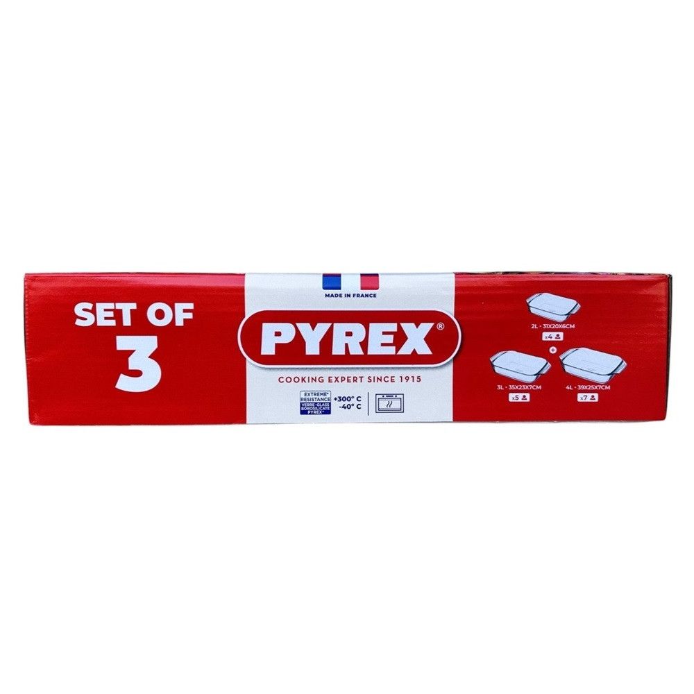 Prepare delicious meals every day with the Pyrex Roaster Rectangle Set of 3. This set includes three premium-quality roasting trays in sizes of 2.1L, 2.9L, and 3.8L, making it perfect for a variety of cooking, baking, and roasting tasks. Made from durable borosilicate glass, these trays withstand temperatures up to 360°C, resist scratches, and are highly shock-resistant. The clear glass design allows for easy monitoring while cooking, and the sturdy side handles provide a secure grip for effortless handling. Safe for use in ovens, dishwashers, microwaves, and freezers, this versatile set ensures durability, convenience, and performance for everyday use.