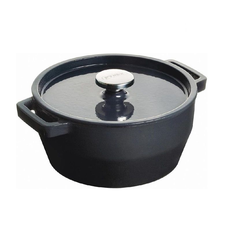 Pyrex Slow Cook 28cm Round Casserole Gray - Durable, Enamel Finish, Induction Compatible