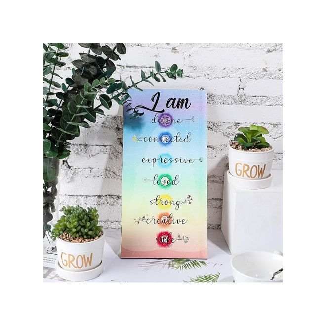 Quotes Sign Buddha Wall Decor Yoga Zen Wall Art Wooden Spiritual Decor 7 Chakra Hanging Motivational Meditation Buddhism Spa Room Sign For Yoga Living Room Bedroom Bathroom(Safe Style)