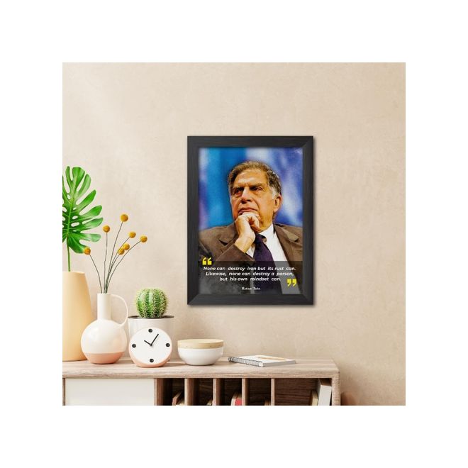 Ratan Tata Photo Frame Drawing Motivational Quotes Laminated Poster Framed Painting With Dark Color Matt Finish S (12 Inches X 9 Inches)