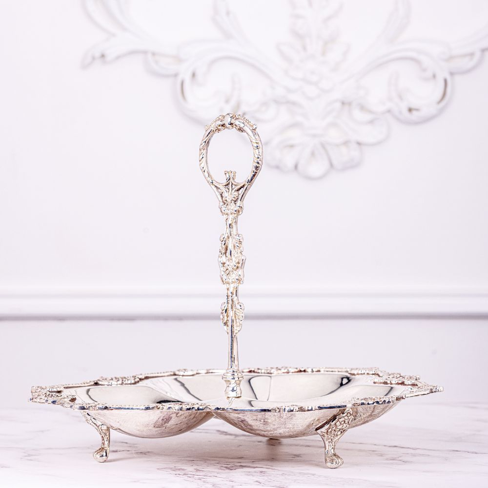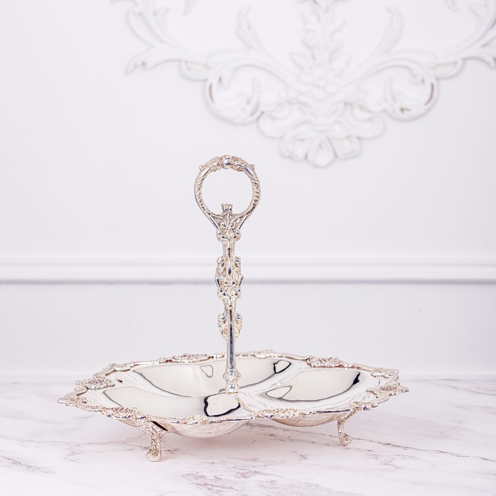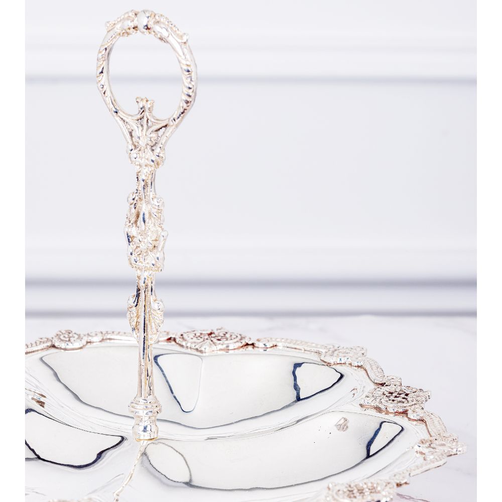 Real Silver Plated Aalam Brass Serving Platter With Handle By Quesera