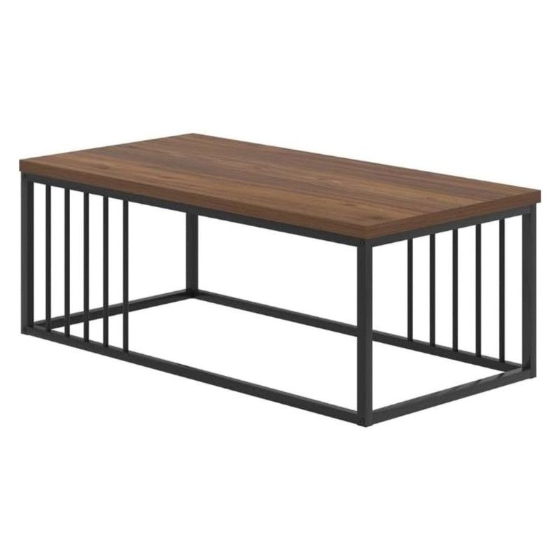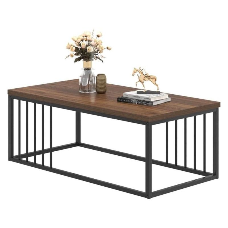 Renfri Coffee Table for Living Room, Metal Frame, Center Table for Home Office (Wooden Top Dark-Oak)