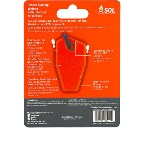 Be heard no matter where you are with the Rescue Floating Whistle. The high-decibel, dual-tones create high and low frequencies that can be heard near and far. This pealess design is crafted of durable, lightweight ABS plastic, allowing the whistle to float and resist every type of weather.