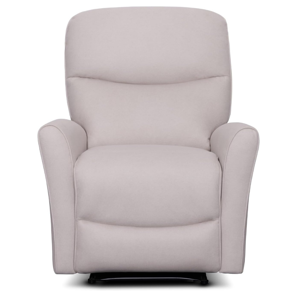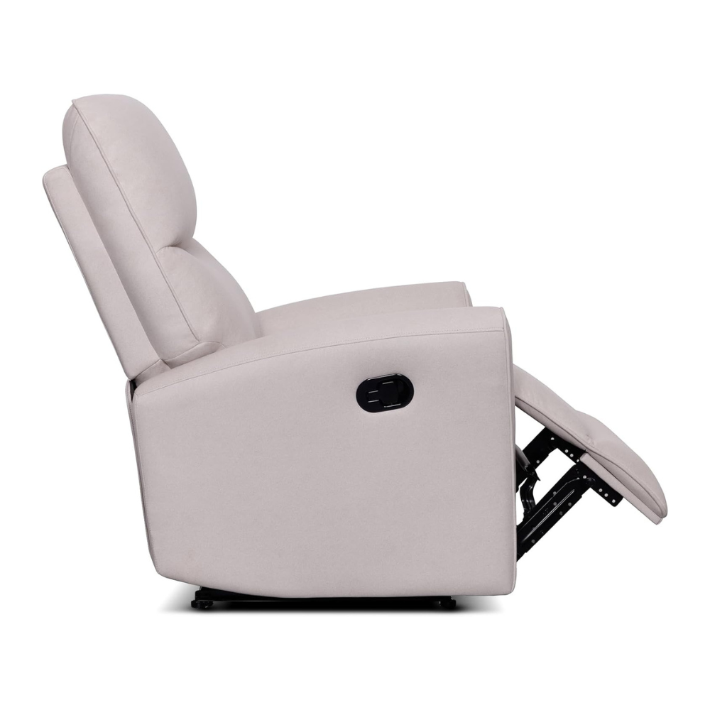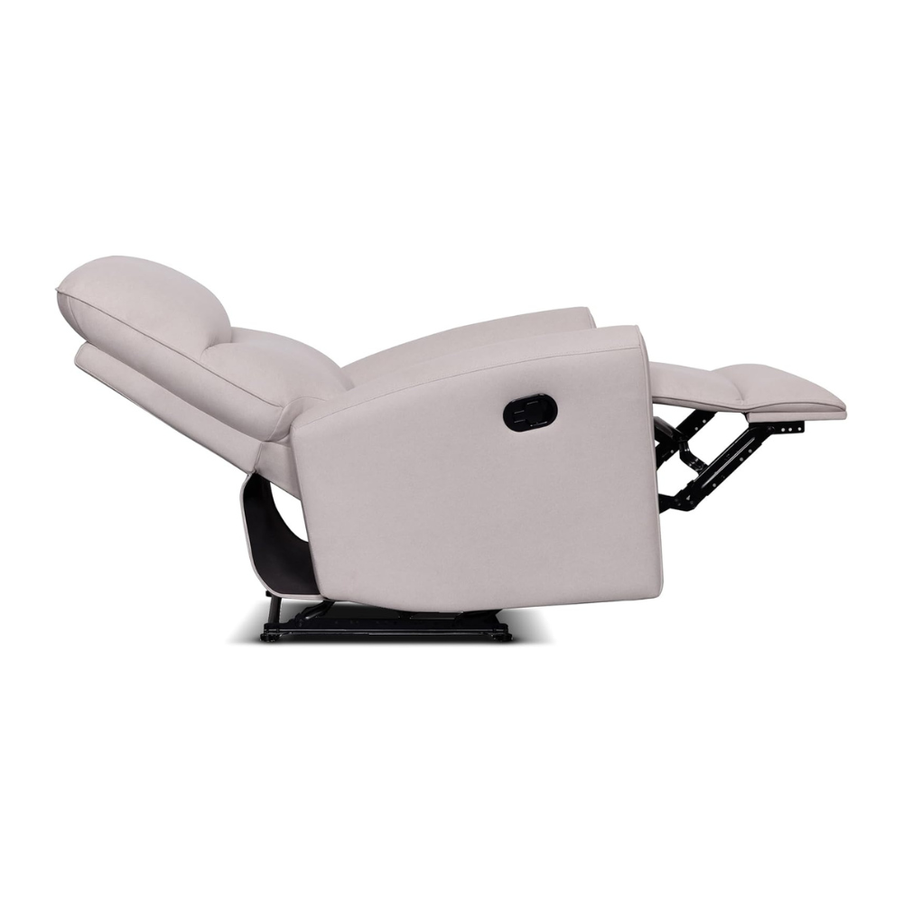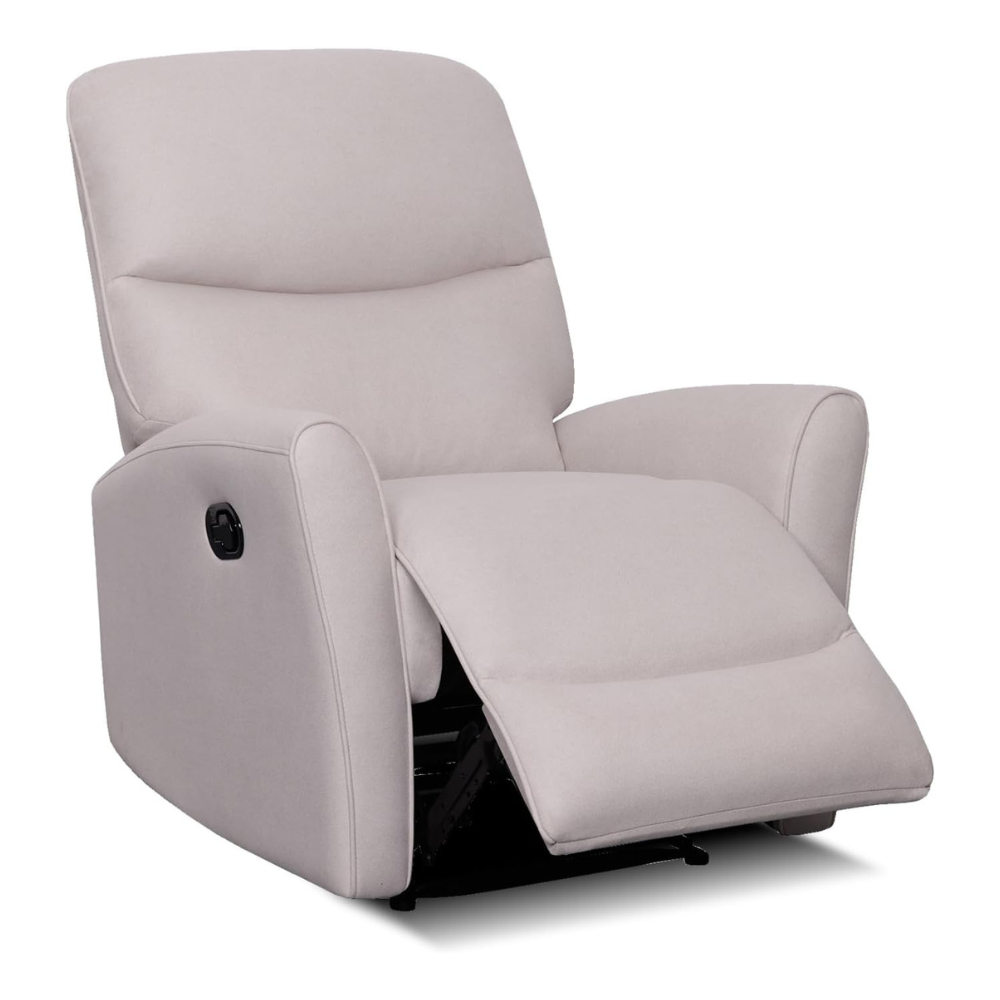 This manual recliner features a smooth reclining mechanism, gentle gliding motion, and a full swivel base—perfect for nurseries, reading nooks, or living rooms.