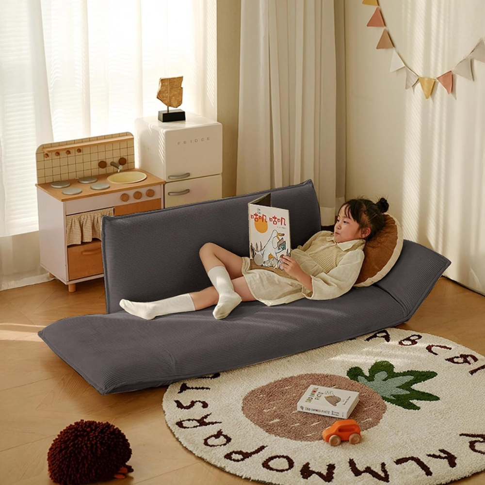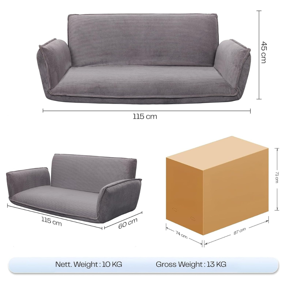 Rotai Mesa Adjustable Comfy Lazy Floor Sofa | Compact Loveseat with Adjustable Back & Arms, Corduroy Fabric, Floor Seating Sofa for Small Living Spaces. (GREY)
