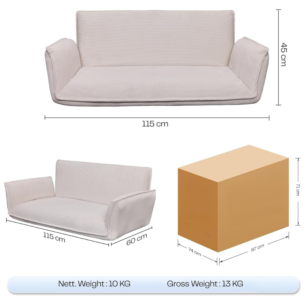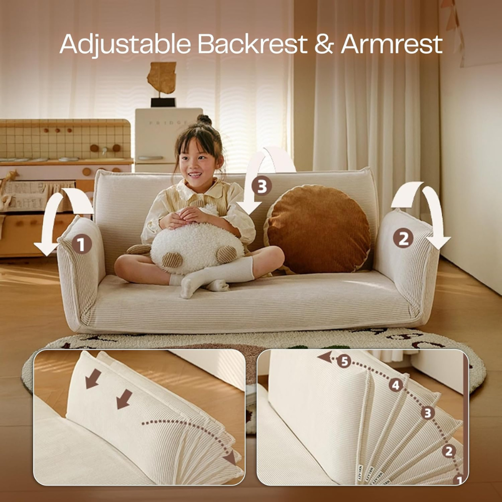 Rotai Mesa Adjustable Comfy Lazy Floor Sofa | Compact Loveseat with Adjustable Back & Arms, Corduroy Fabric, Floor Seating Sofa for Small Living Spaces. (WHITE)