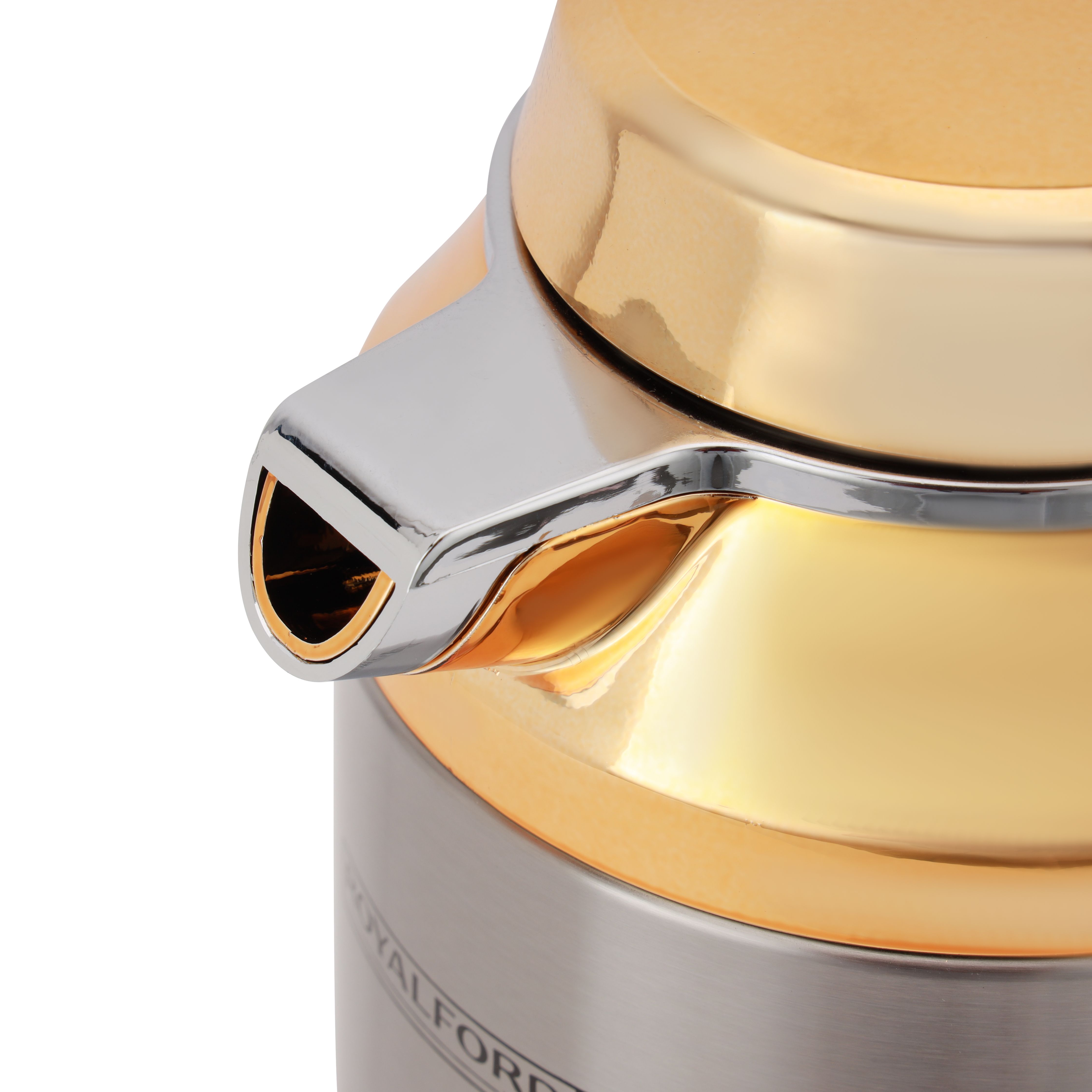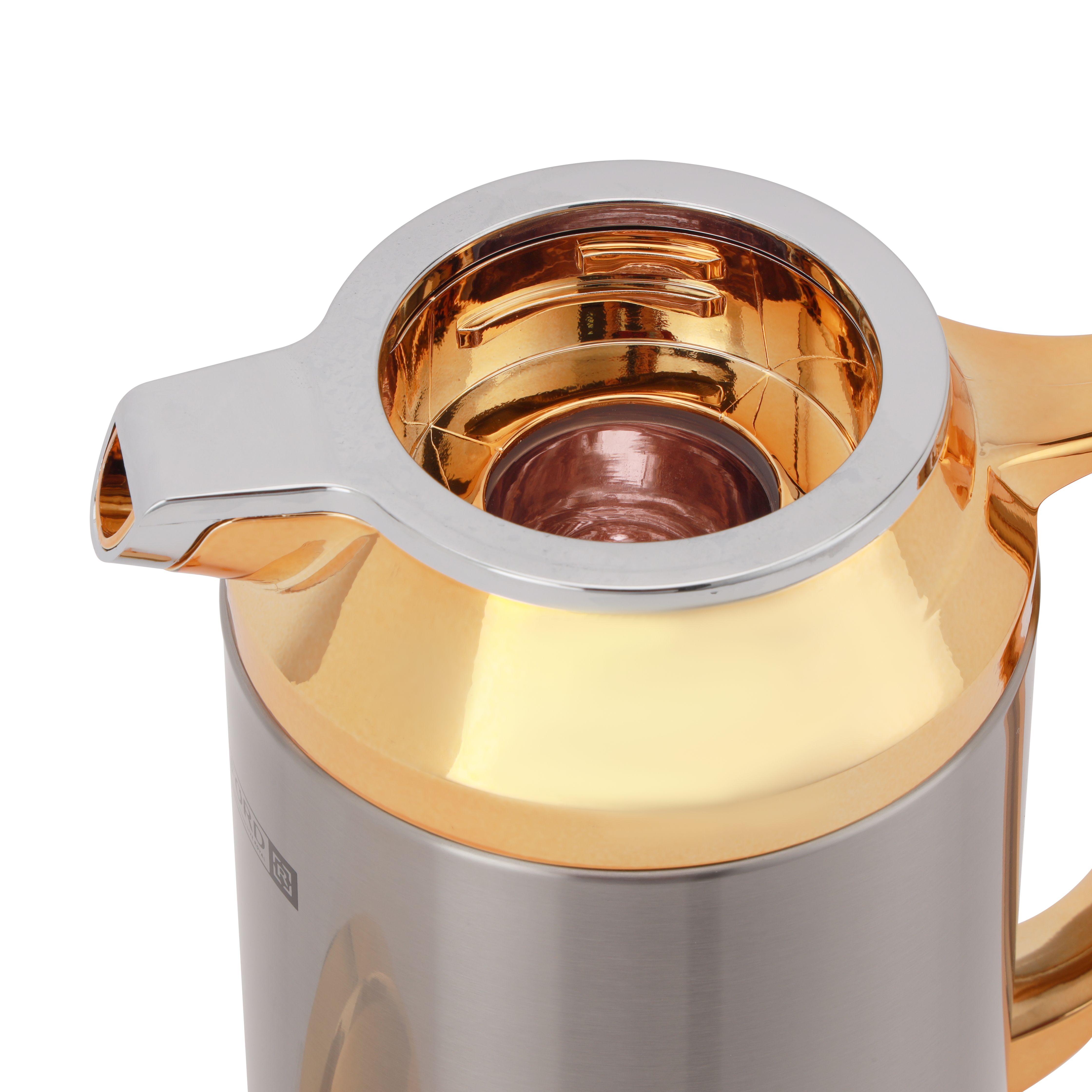 صور المنتج Royalford 1.6 L (54.0 oz) Vacuum Flask- RF12124| With Pink Glass Inner and Stainless Steel Outer Body| Keeps Your Drinks Hot or Cold, Asbestos-Free and Hygienic| Leak-Proof and Portable Design| Suitable for Indoor and Outdoor Use| Silver and Golden تستخدم لأغراض التوضيح فقط. وقد يختلف لون المنتج قليلاً بسبب إضاءة التصوير أو إعدادات الشاشة.