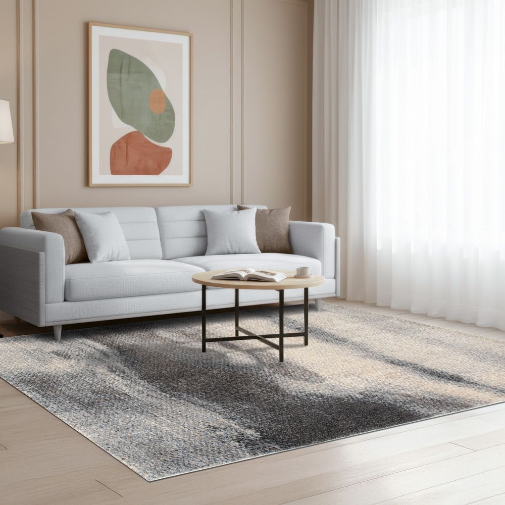 Airing and vacuuming will help to eliminate the smell that Rug can have when its new.