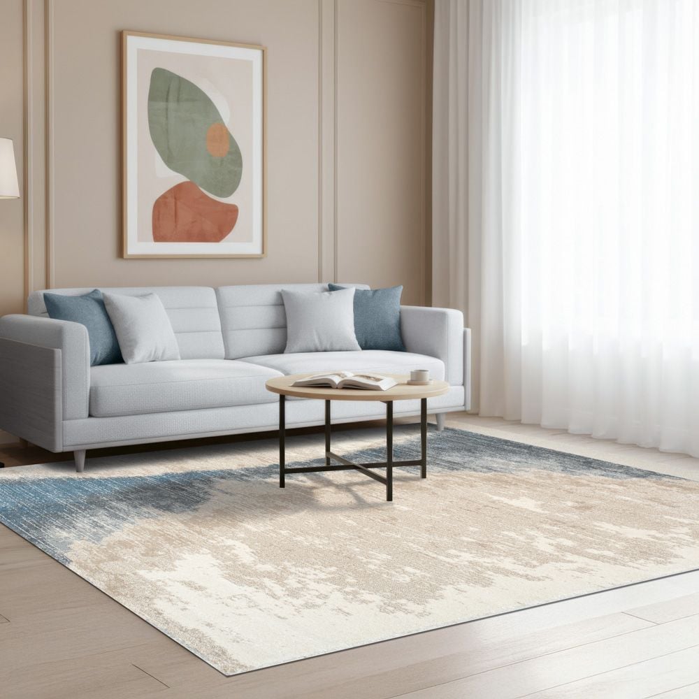 Airing and vacuuming will help to eliminate the smell that Rug can have when its new.