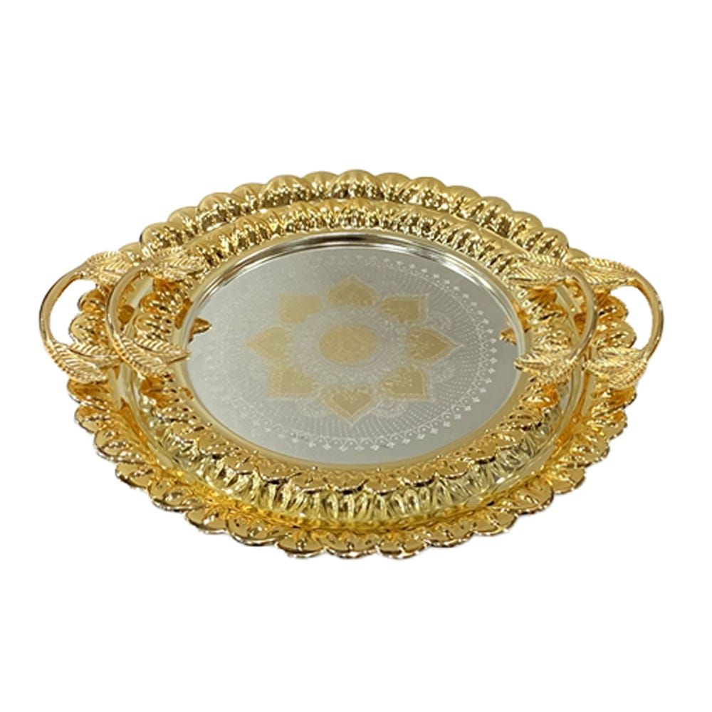 Gold And Silver Round Tray 2Pcs Set- Stainless Steel