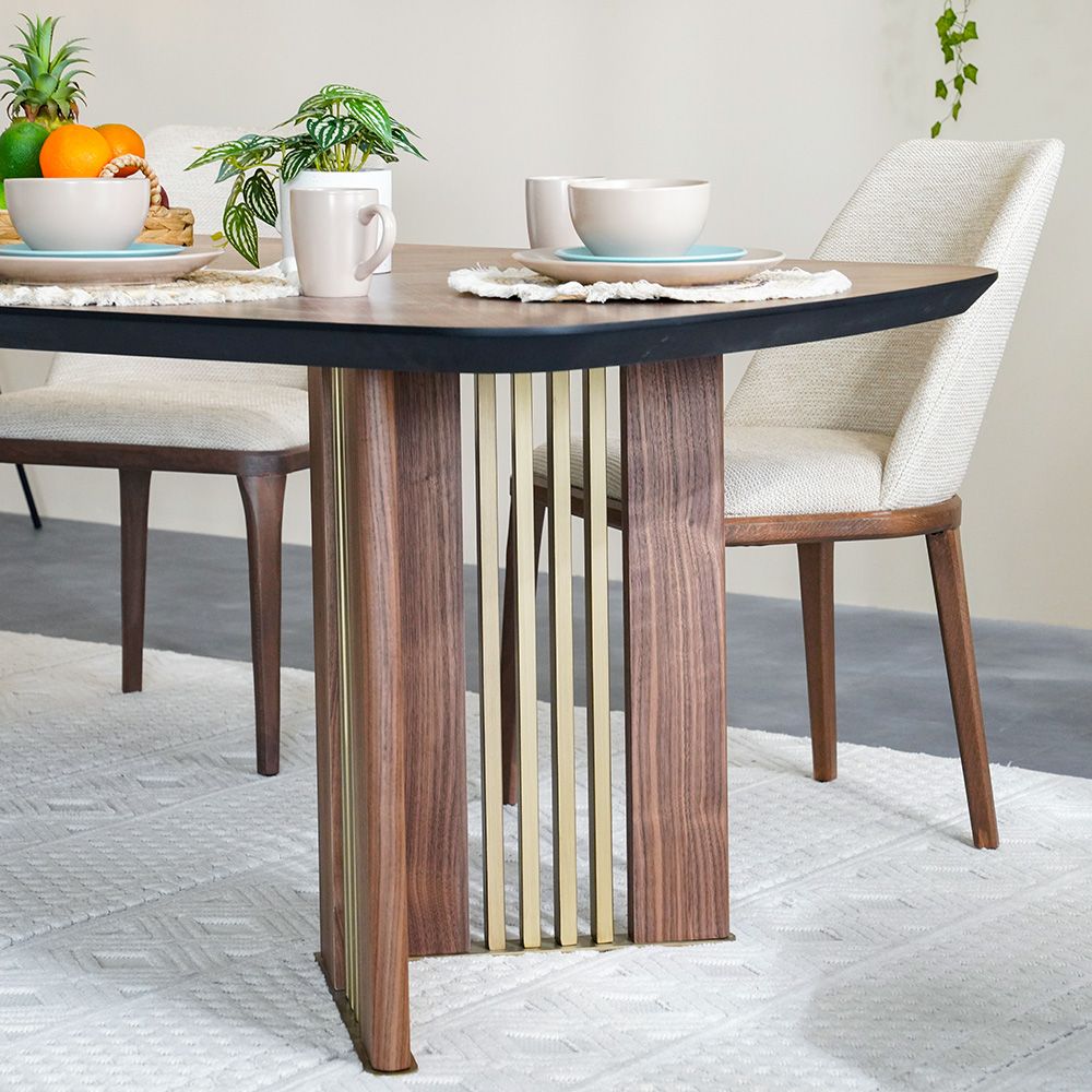 Siesta Wooden 1 + 8-Seater Dining Set - Walnut/Antique Gold/Beige - With 2-Year Warranty