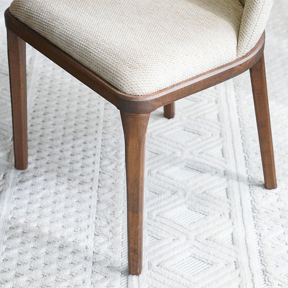 The chairs feature fine fabric upholstery in beige that adds to the overall look and comfort of the ensemble.