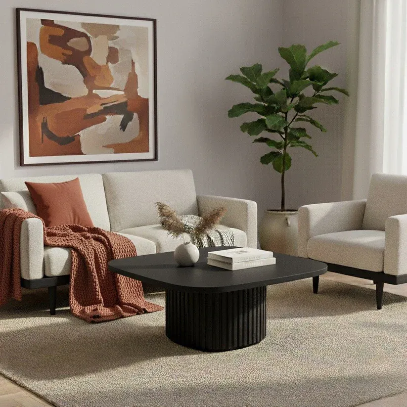 The Smith Coffee Table in Black is a sophisticated addition to any living space, offering a perfect blend of style, warmth, and functionality. Designed with a rounded square top, it’s crafted from natural ash wood veneer, showcasing the unique grain and texture of the wood. The bold black finish adds depth and elegance, making it an inviting focal point in both compact and open rooms. Ideal for smaller spaces or apartment living, its size offers everyday practicality without overwhelming your layout—perfect for enjoying coffee, hosting friends, or simply displaying your favorite décor.