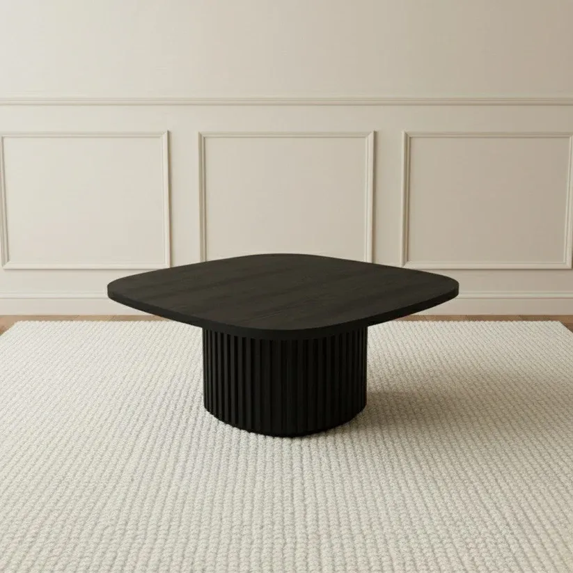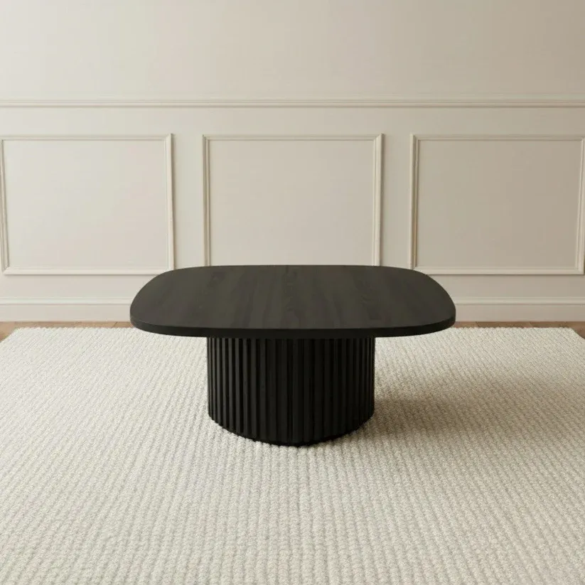 What sets the Smith Coffee Table apart is its striking pedestal base, featuring a fluted, tambour-style design. This sculptural element adds a modern edge while maintaining timeless appeal. The vertical ridges create a rich visual and tactile contrast against the smooth tabletop, offering both decorative charm and solid structural support. The balance between classic form and contemporary detail makes this coffee table a standout piece in modern, minimalist, or transitional interiors.