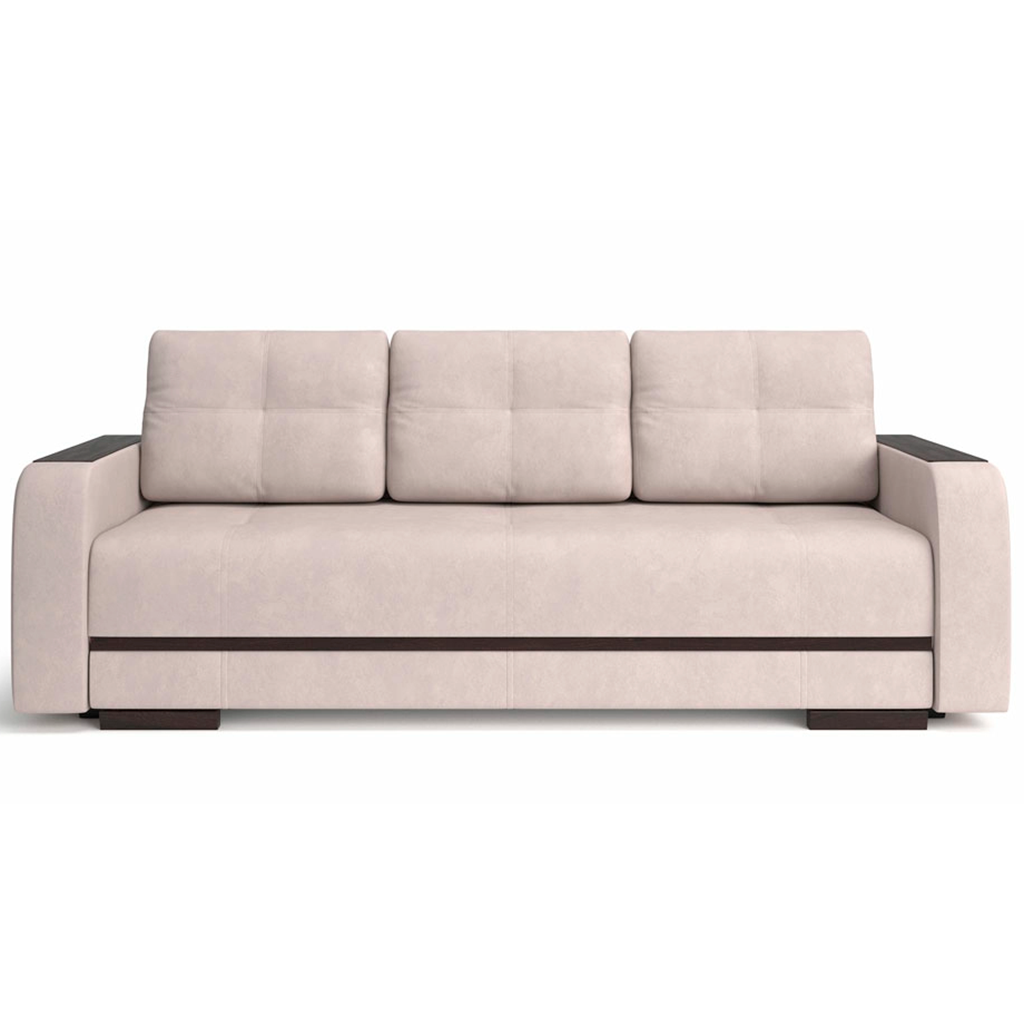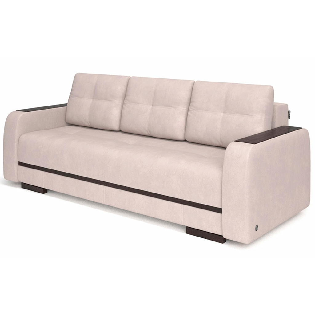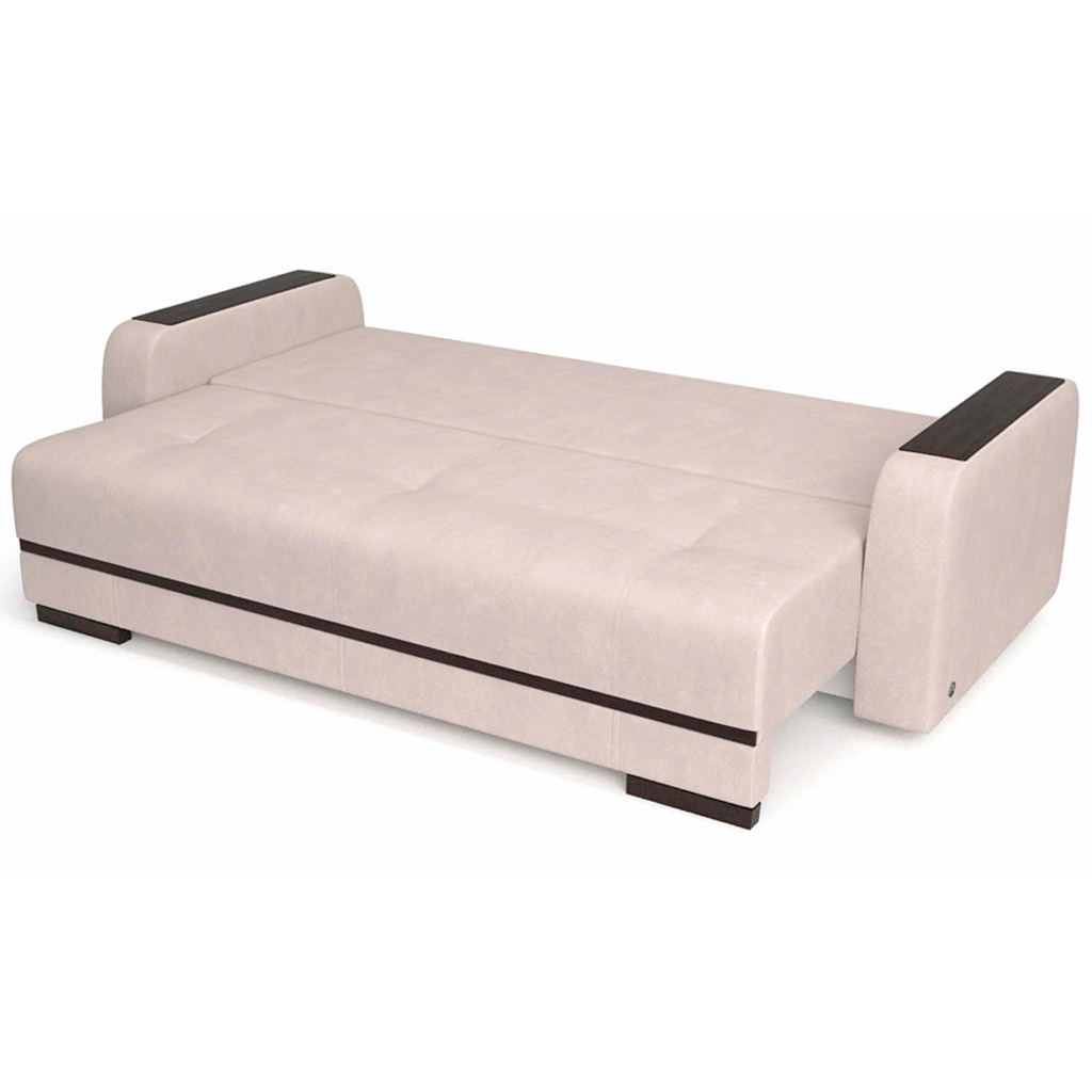 Sofa-bed «Mario» Modern received updated design and enlarged dimensions. Now it has not two, but three back cushions, there are static armrests that can be improved with wooden pads, and the seat has become longer, so that it can easily accommodate three people at once. At the same time, the common features with the predecessor still remain: the seat upholstery is still decorated with dotted suspenders, and on the front side is placed a wooden plank in the color of the legs. The concise and elegant appearance of the sofa allows it to occupy a worthy place in most modern interiors, whether it is a living room in a minimalist Scandi style or a kitchen in a brutal loft style.