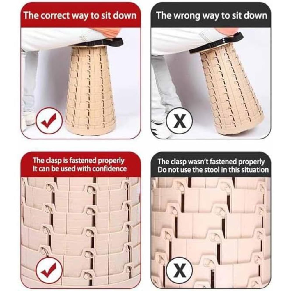 Soft Rubber Pad Folding Stool, Portable Foldable Telescopic Stool, 550 lbs Weight Capacity, Ideal for Camping, Fishing, Hiking
