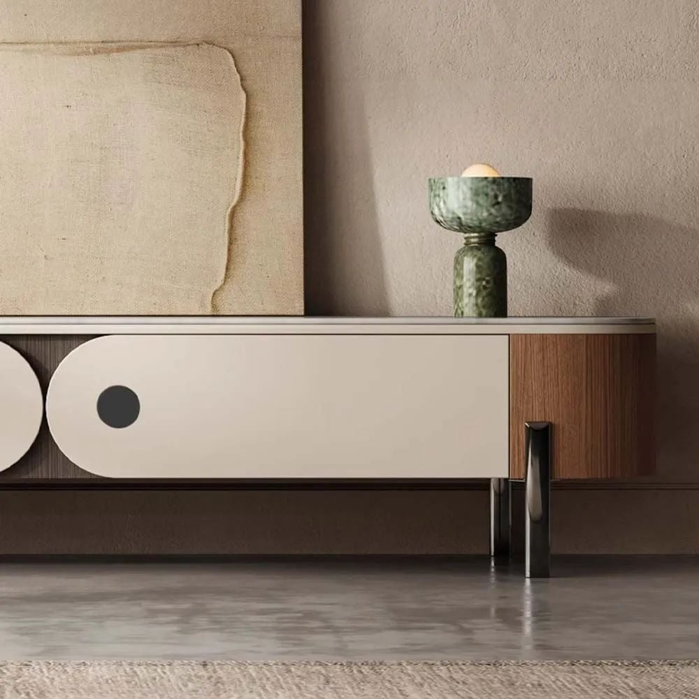 An elegant design TV table with smooth, rounded edges that give it a modern look while softening the sharp lines of traditional designs.