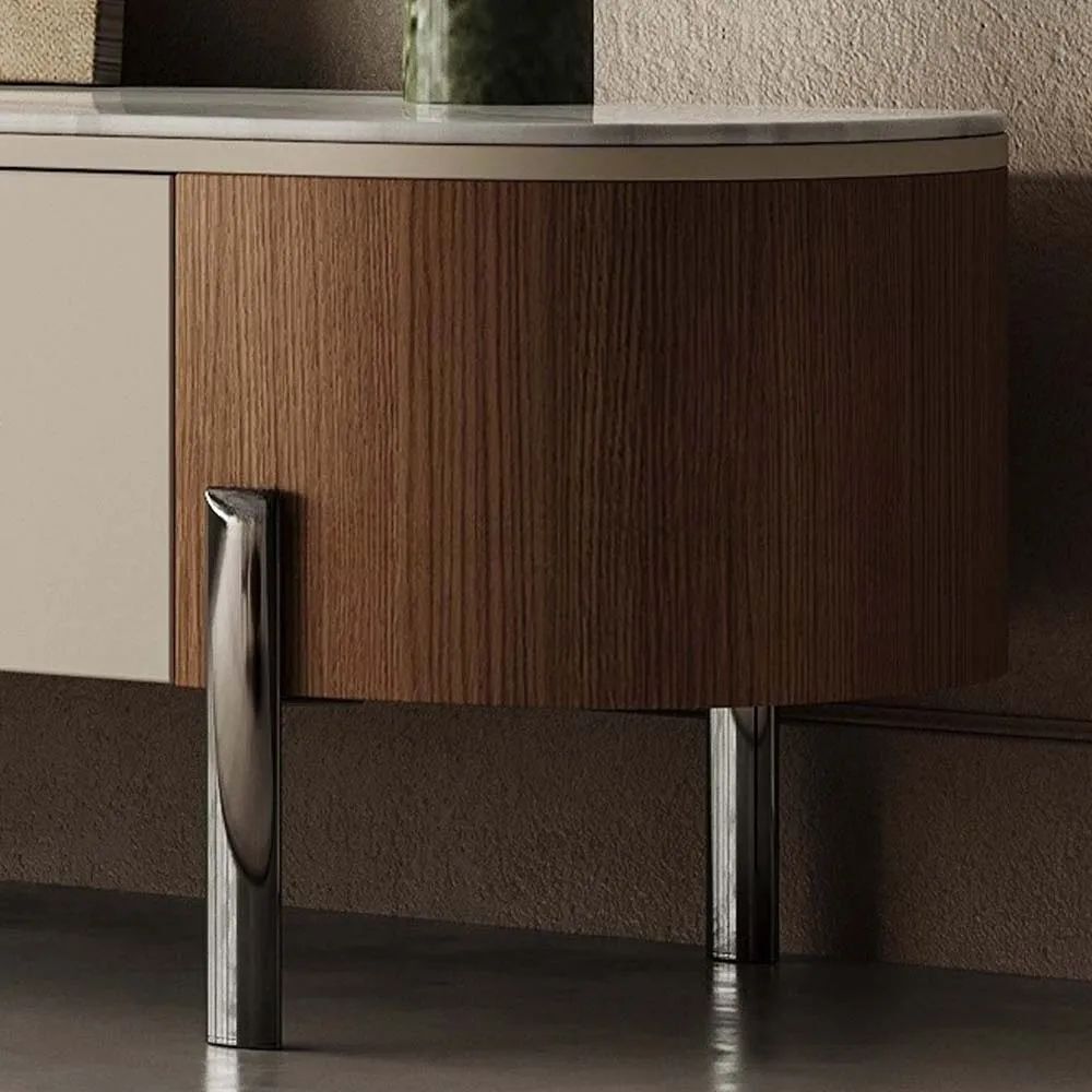 Eye-catching design details** blend a warm brown walnut wood structure with a creamy front and a marble top, adding warmth and elegance to any space. This piece complements both modern and luxurious home décors.