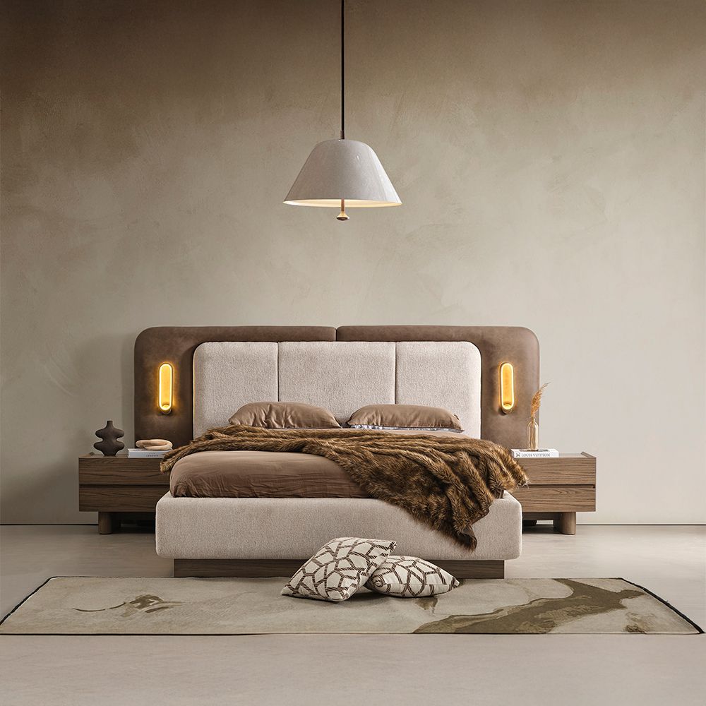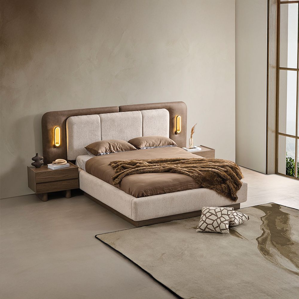 Somahus 180X200 Upholsterd King Bed Set With 2 Night Stand With Led And Dresser Mirror Stool-Walnut/Brown