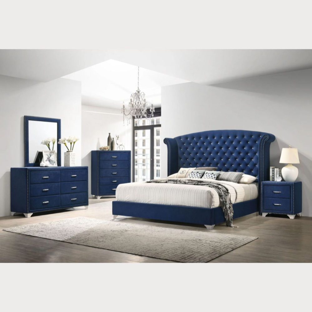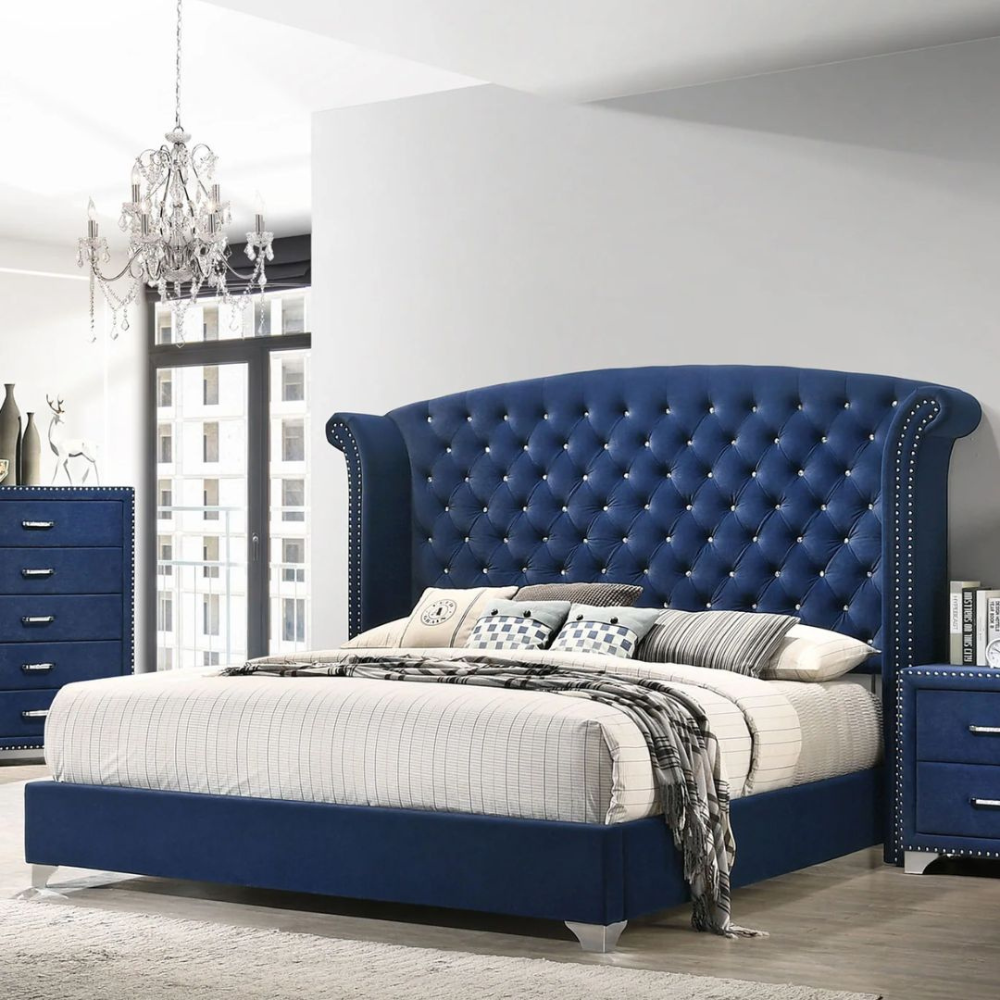 Sonvora Elegant Modern Button Tufted Bed for Luxury Bedroom with Silver Metal Legs In Soft Fabric King