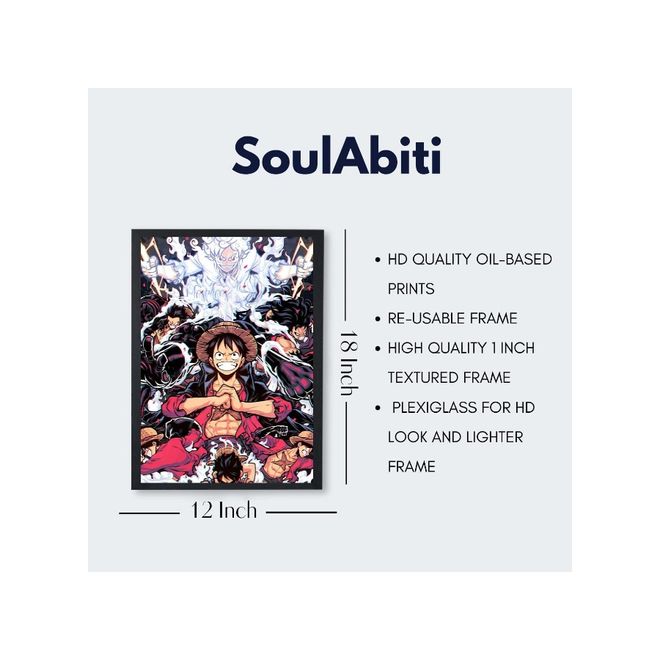 Soulabiti Presents One Piece Monkey.D.Luffy All Gears Art (12-Inch X 18-Inch, Framed)(Multicolor)