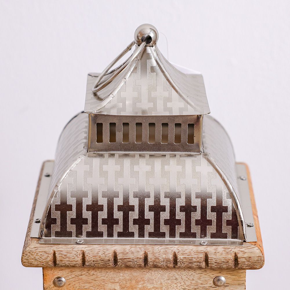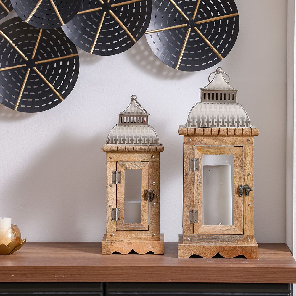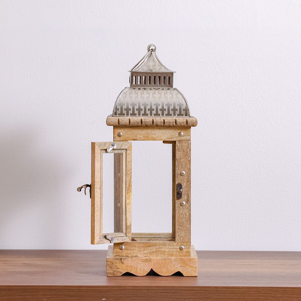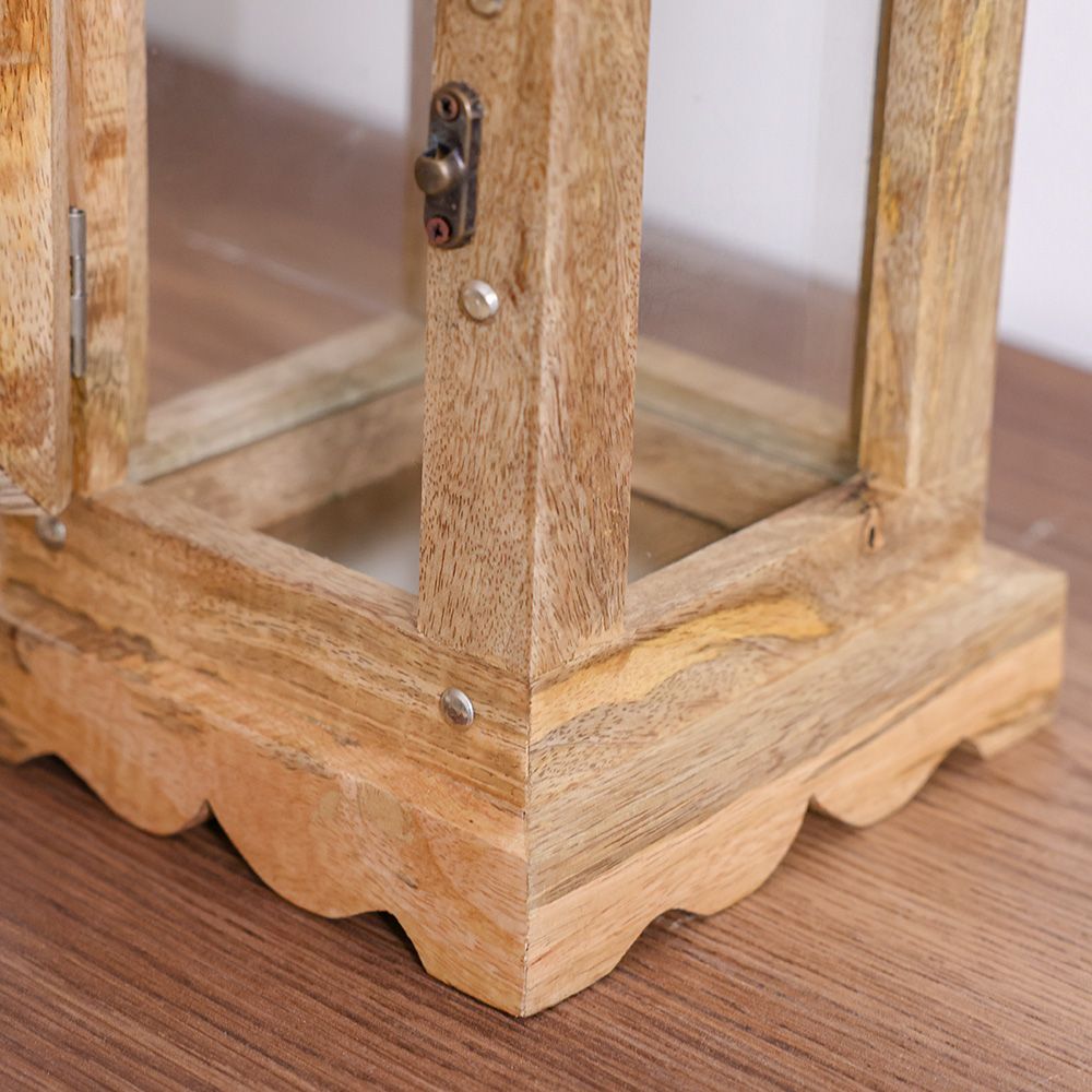 فانوس صحارى خشبي - لون طبيعي - كبير - 15 × 15 × 38 سم