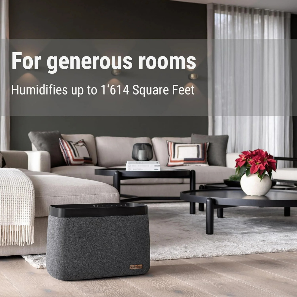 Stadler Form Swiss Designed humidifier Karl Big, powerful evaporator for humidifying rooms of up 1614 square feet, 2,64 gal water tank, 4 humidification levels, controllable via an app, 2-Year Warranty + Local Support.