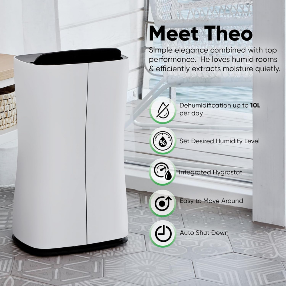 Stadler Form Theo Swiss Design Dehumidifier 10L per Day Silent Operation, for Home Office up to 40m² 2 Liter Water Tank, 1–7H Timer, Continuous Drainage 2-Year Warranty by Manufacturer + Local Support