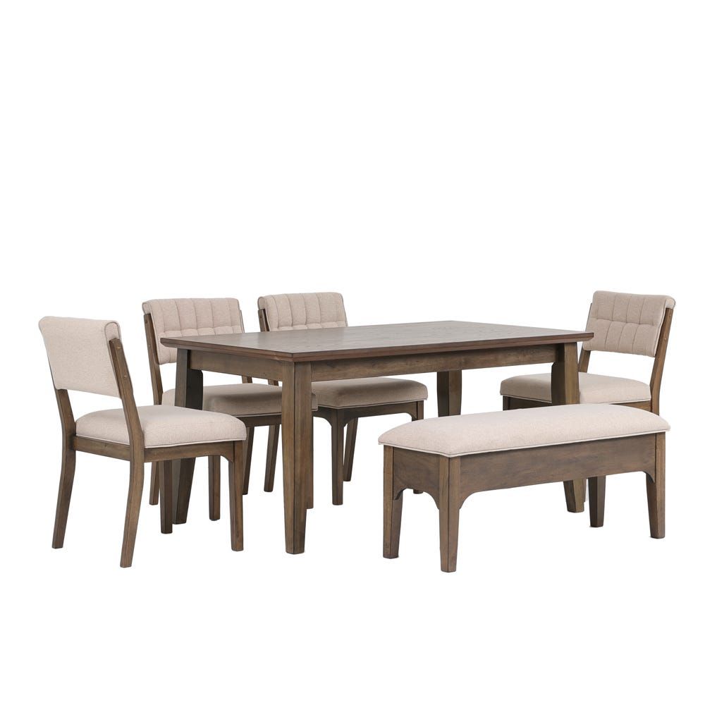 ستيبي - طاولة طعام 4 مقاعد + مقعد مزدوج - خشبي / بيج