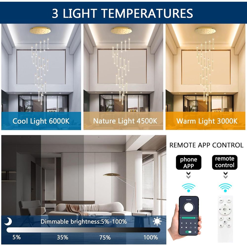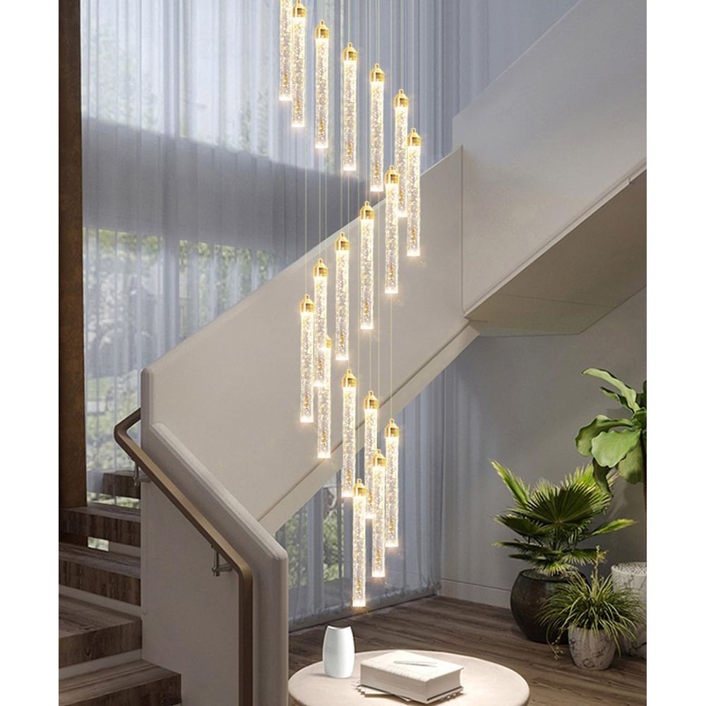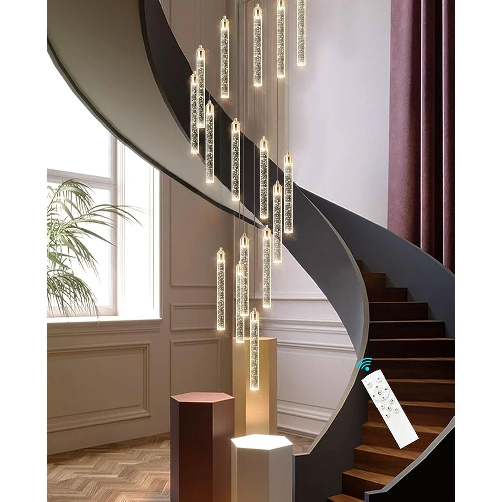 Stunning 156-inch tall chandelier with 29 LED tubes and remote control. Ideal for grand staircases or foyers.