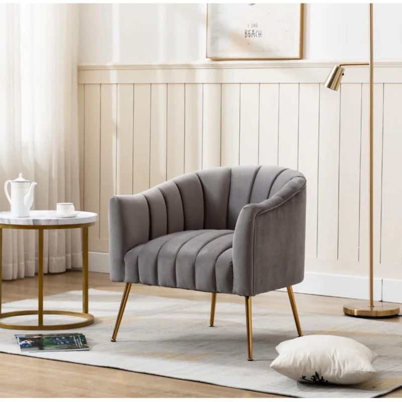 This velvet accent chair brings a touch of glamour and sophistication to your living room or bedroom, enhancing the space with its luxurious appearance and comfortable design. Crafted with a solid and engineered wood frame, ensuring durability and stability. It is supported by metal conical legs in a rose gold finish, which not only provide robust support but also add a glamorous flair.