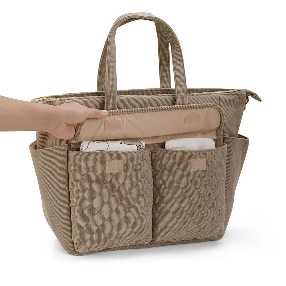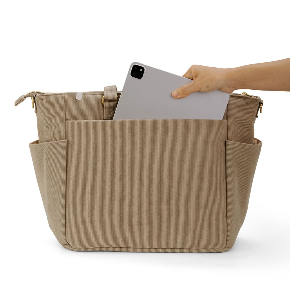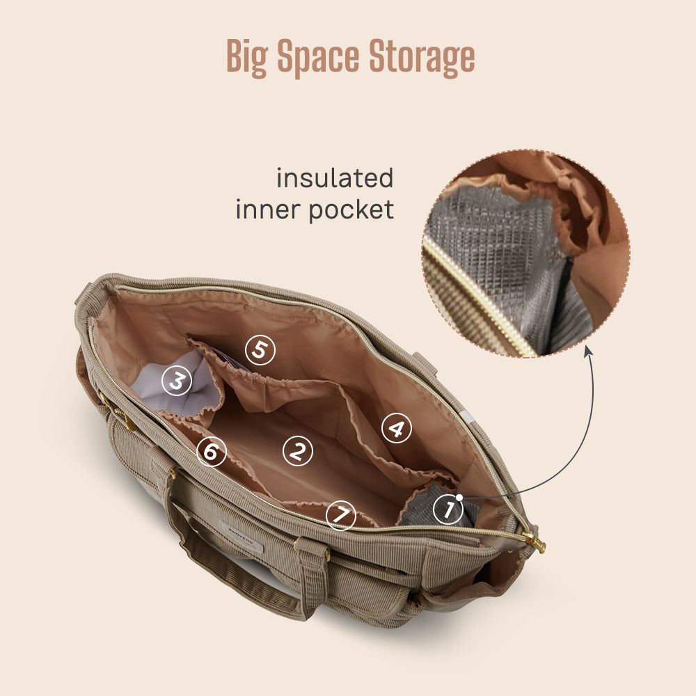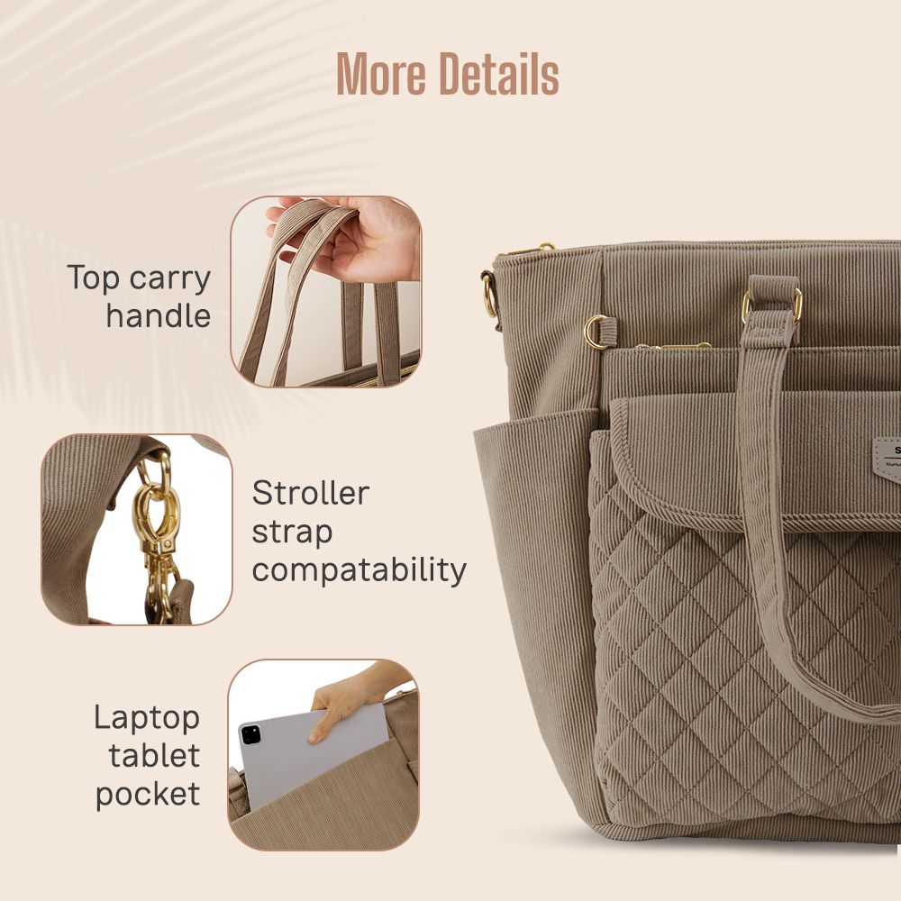 Sunveno Corduroy Diaper Bag with Changing Mat and Stroller Straps - Beige Khaki