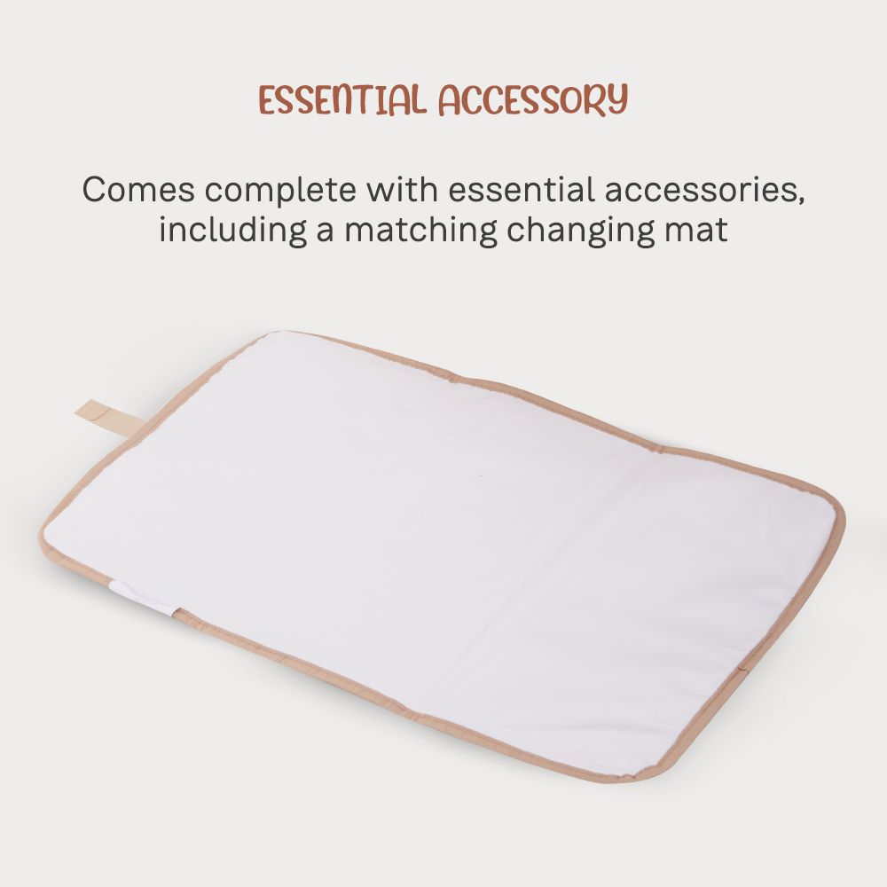 Inside, smart organization makes parenting on the go easier than ever. With 2 spacious compartments, 7 internal pockets, and 2 external pockets, there’s a place for everything. A padded laptop/tablet pocket (25cm × 27cm) lets you carry your tech safely, while the insulated bottle pocket keeps drinks at the perfect temperature. The bag also features a wet/dry separation pocket for hygienic storage, plus a changing mat for quick diaper changes wherever you are.