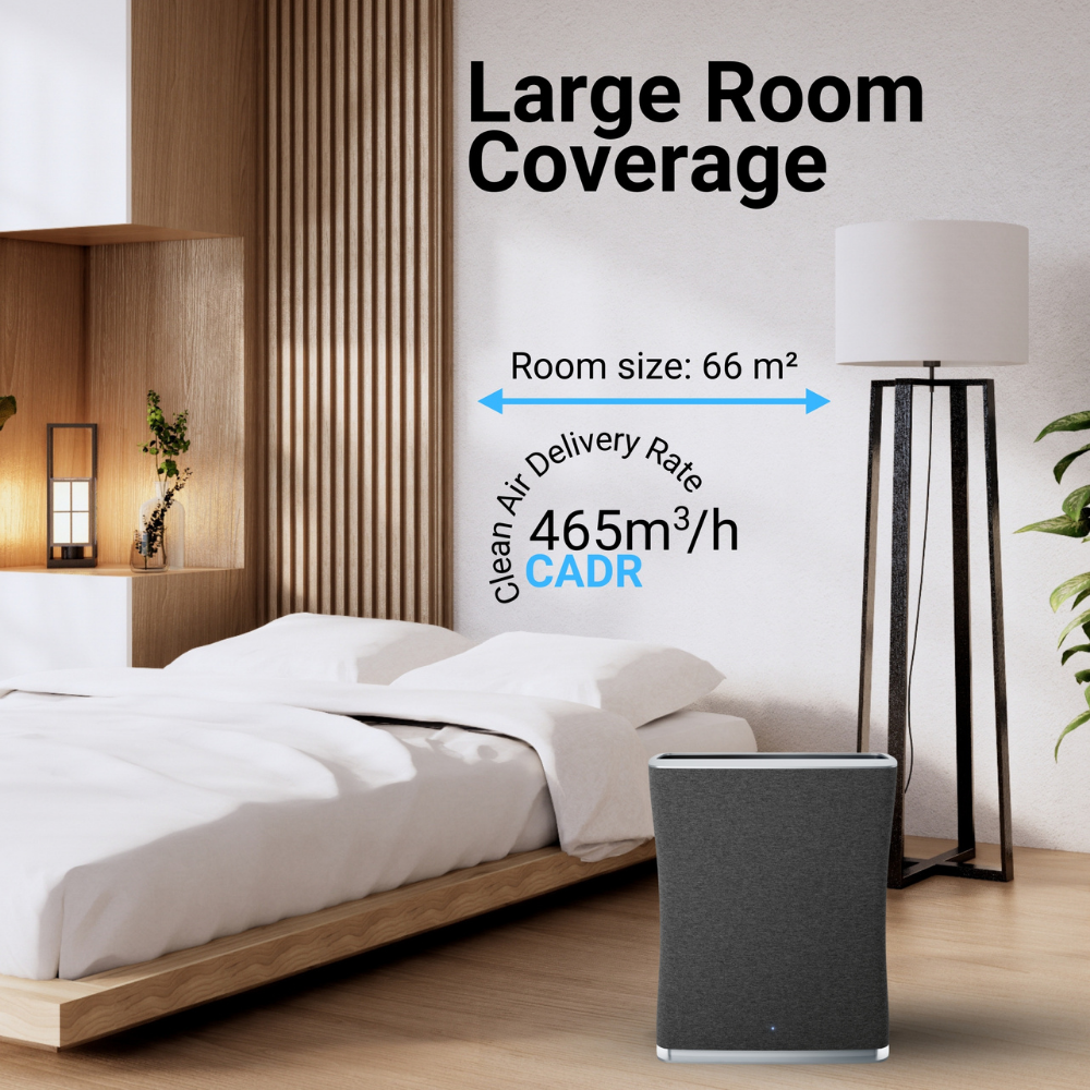 QUIET NIGHT MODE: Clean air and less noise mean better sleep. Thanks to 5 power levels (from nearly silent to a maximum of 58 dB(A)) and dimmable LEDs, Roger big is also ideal for large children's rooms and bedrooms