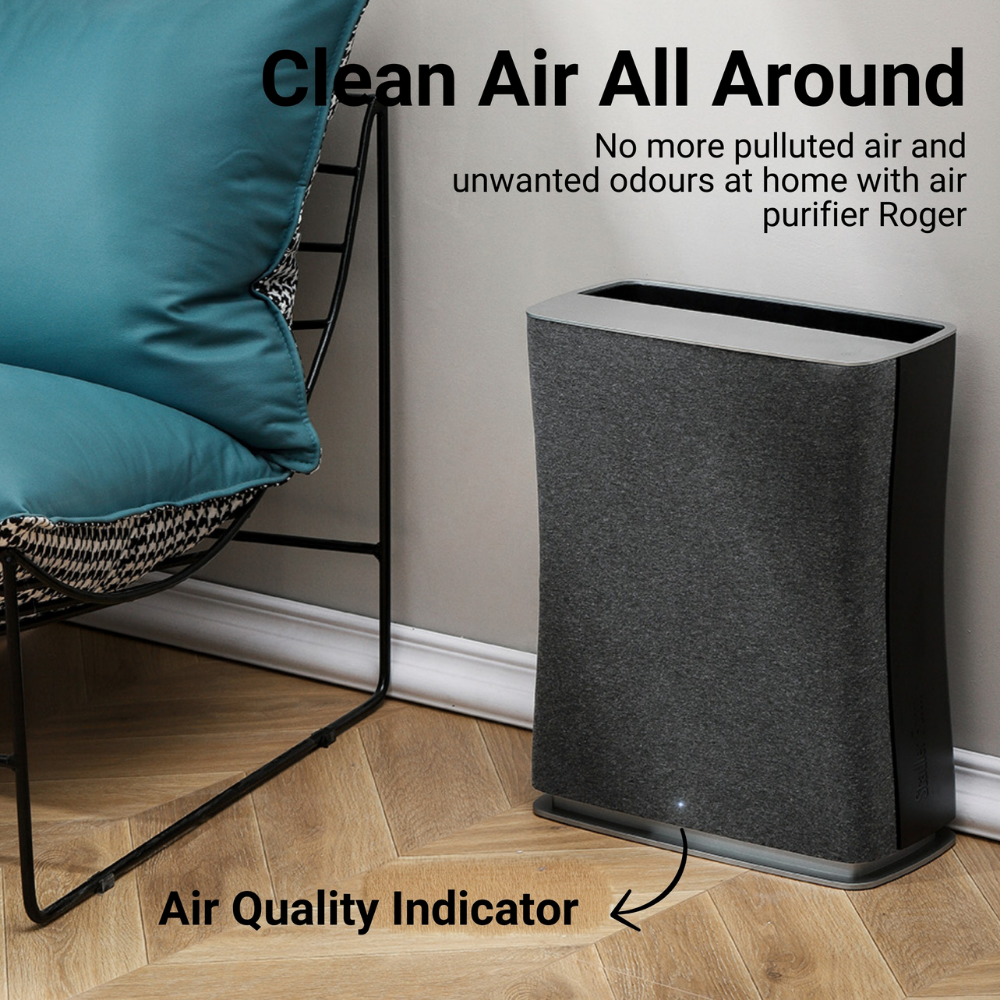 BREATH FREELY: Air purifier Roger is perfect for allergy sufferers, families with children and pet owners. Designed for rooms up to 710 square feet, he purifies and completely exchanges the air 3 times per hour