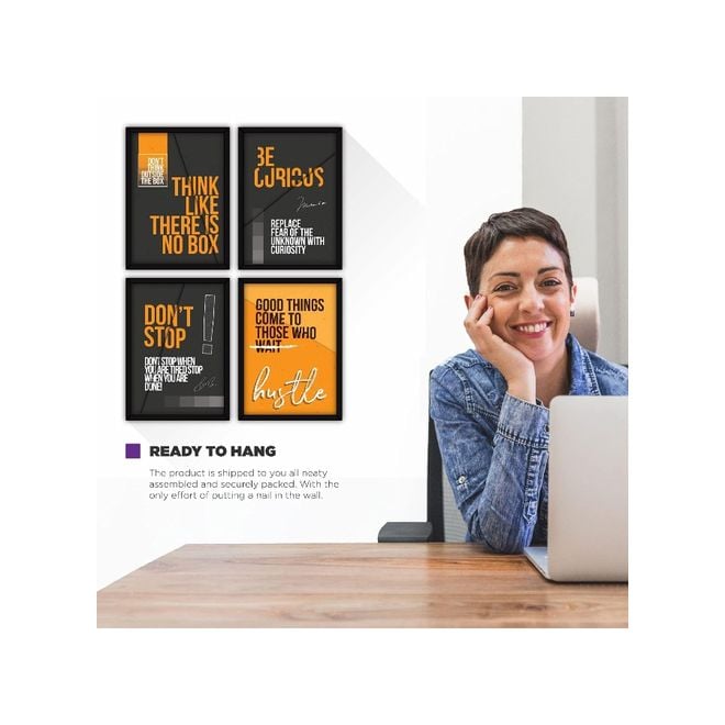 Synthetic Framed Wall Paintings Inspiring Quotes For Office And Home, With Glass Multicolour-Set Of 4