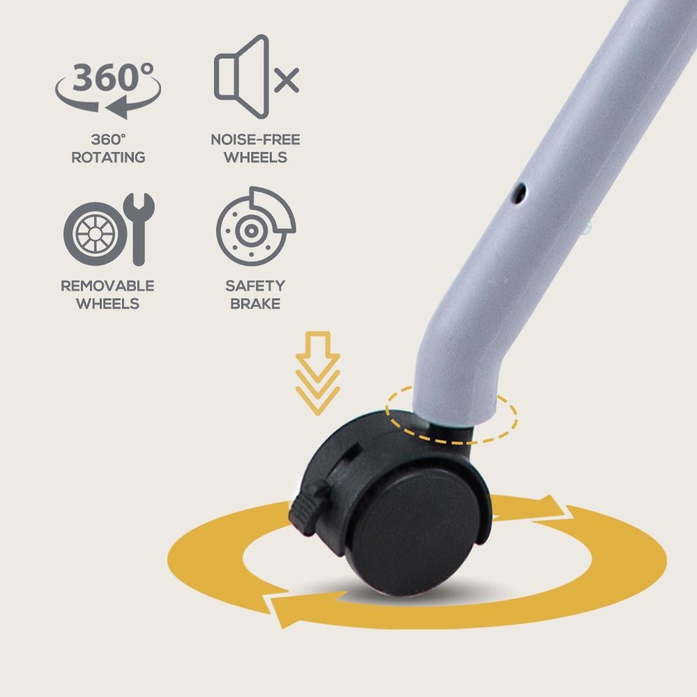 UNIVERSAL WHEELS WITH BRAKE : Universal wheel with 360° rotation with Lockable Bearings can move on the rough ground and plush carpet more easily.