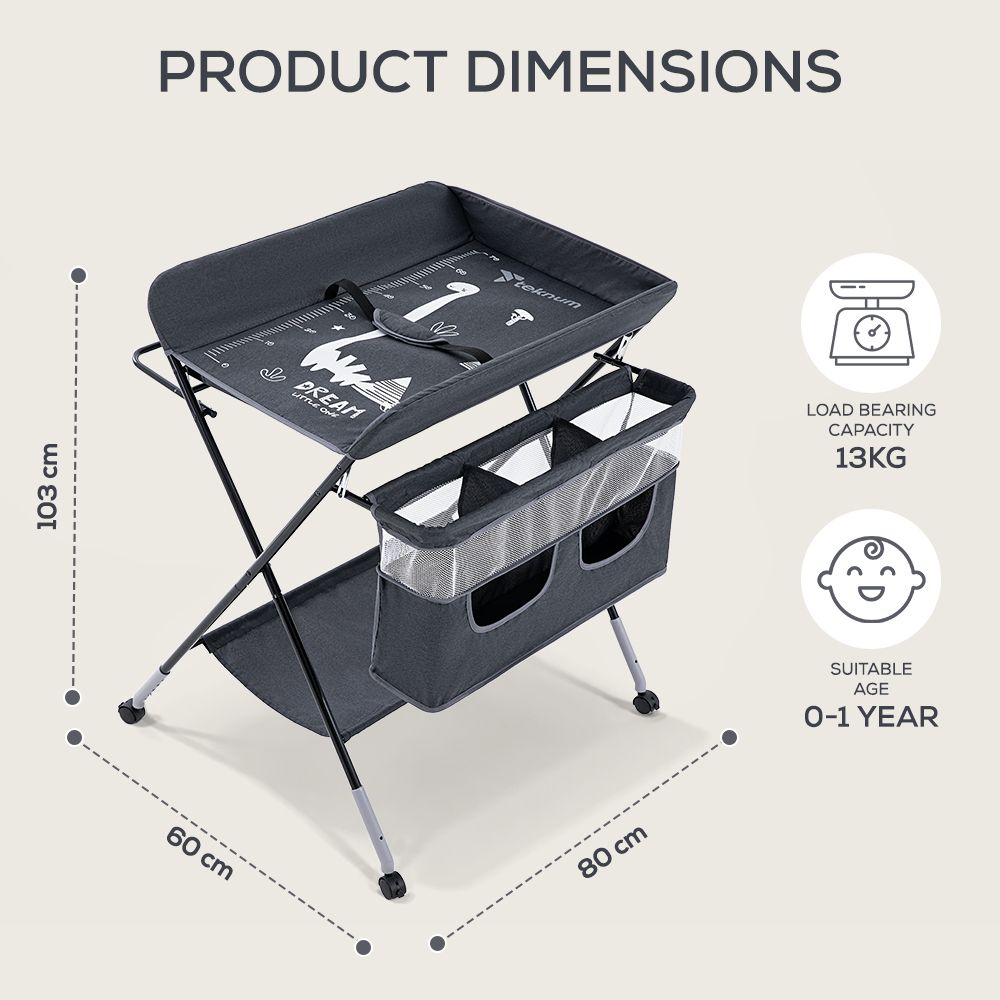 Teknum 4 - in - 1 Diaper Changing Table Organizer - Charcoal Grey