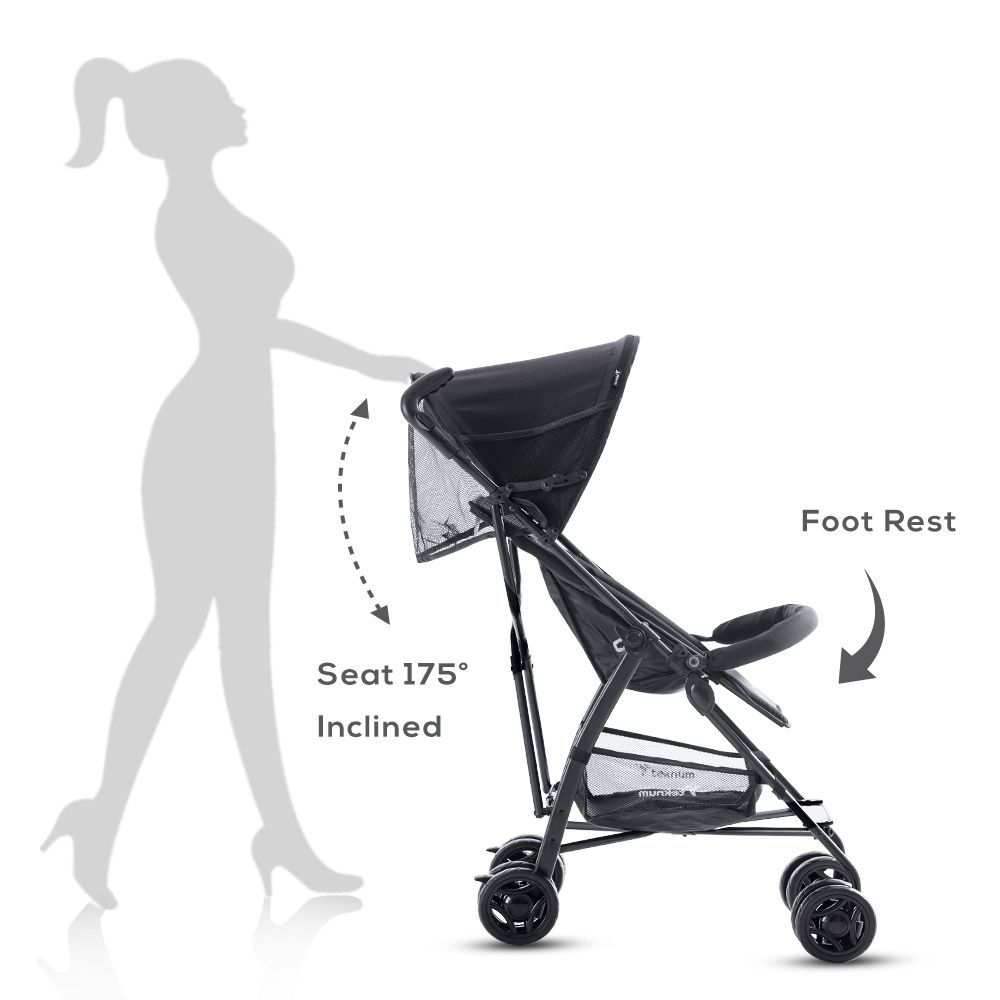 The Teknum Eco Lite Stroller by SAMBOX is a lightweight durable buggy to stroll around with ease and convenience. Great for outdoors and during travel. Sturdy Dark Grey frame, comes with big storage basket and easy to Fold.