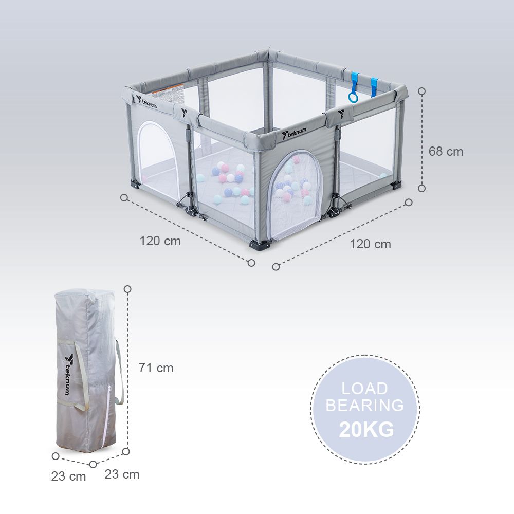 Teknum One - Minute Fold - Unfold Playpen, 120 x 120 cm with Mattress and Balls - Grey
