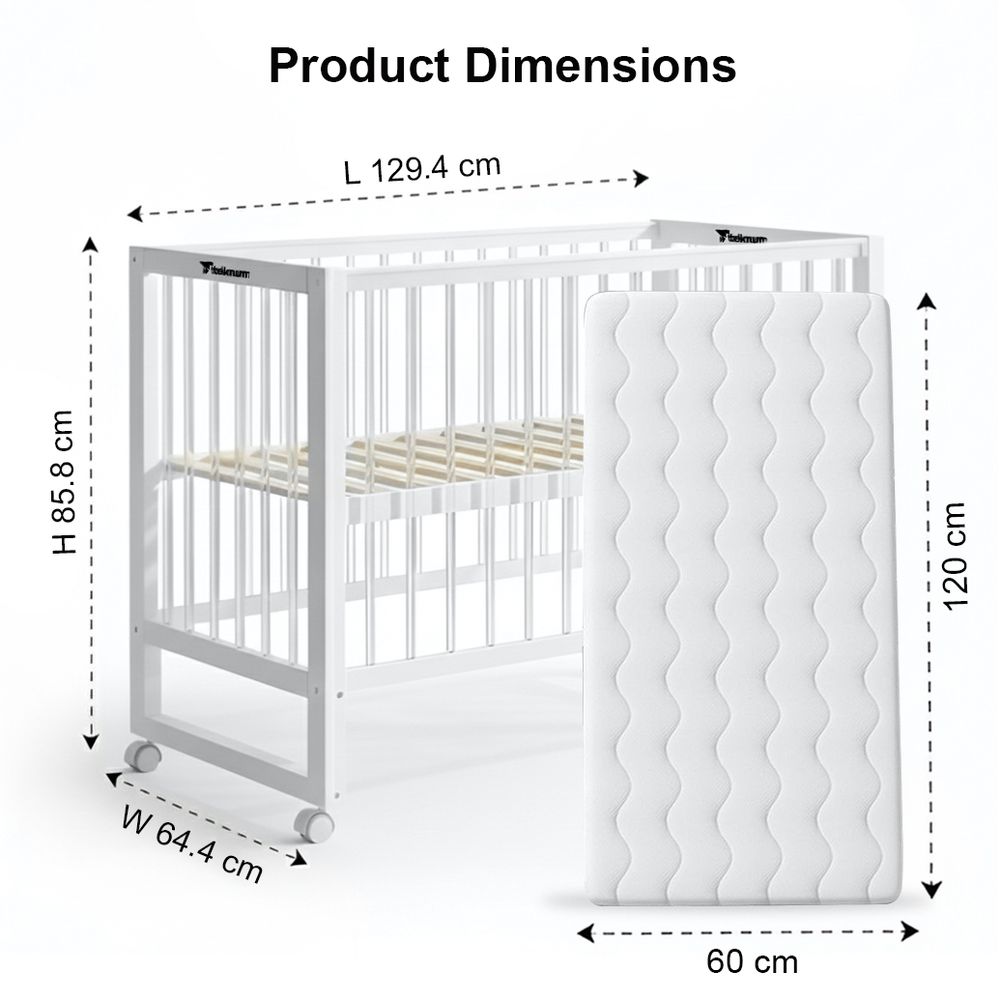 Adjustable Mattress Height with Premium Coconut Coir Mattress: Comes with a 120×60cm natural coconut coir mattress offering optimal firmness, ventilation, and spine support for healthy sleep. The three-level adjustable mattress base allows parents to customize the height as the baby grows — ensuring safety, comfort, and easy access at every age.