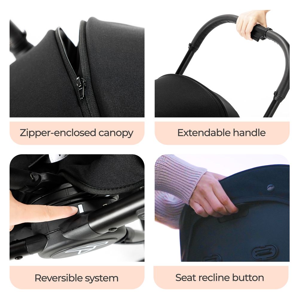 The Extra Wide Canopy - with UV50+ protection, can be extended with the enclosed zipper while having a peek a-boo window. Convenient while travels and summers.