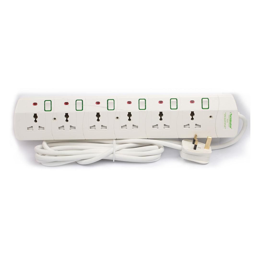 Terminator 6 Way Universal Power Extension Socket 13A 3M Cable