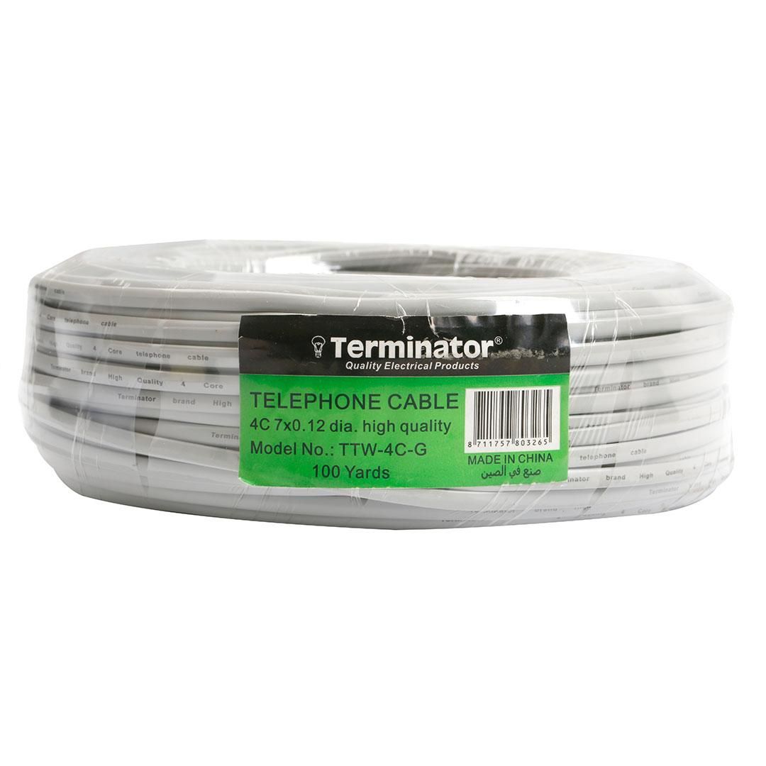 Terminator Telephone Wire 4 Core 100 Yards Conductor 7x0.12mm CCA Cable PVC 2.4mm x4.8mm-Grey